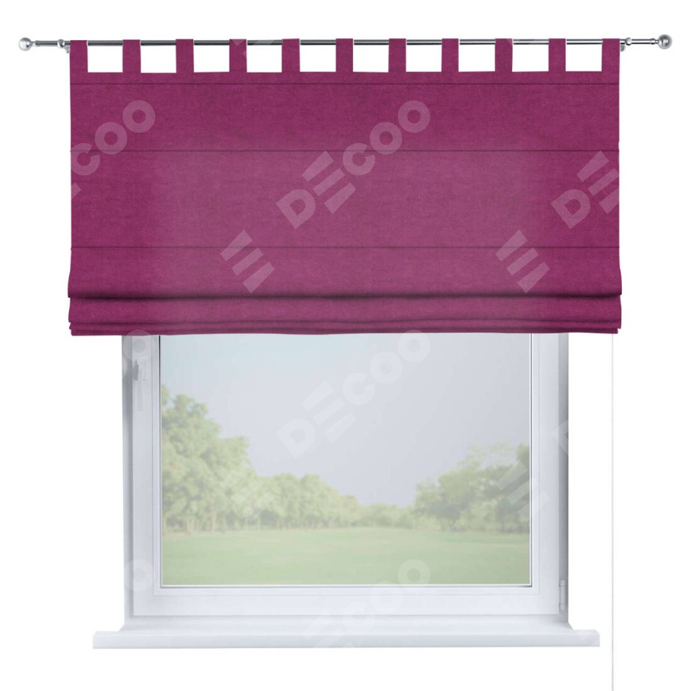 Римская штора производителя «Cortin», используется для проёма, пошита из ткани вельвет фиолетовый, артикул ткани 85552. Данная модель пошита на петлях, комплектуется на выбор круглым карнизом и подходит для монтажа на стену. Римская штора на петлях имеет простую систему регулировки высоты, отличительным преимуществом данной модели является простой способ монтажа. Достаточно повесить ее на трубу и штора готова!