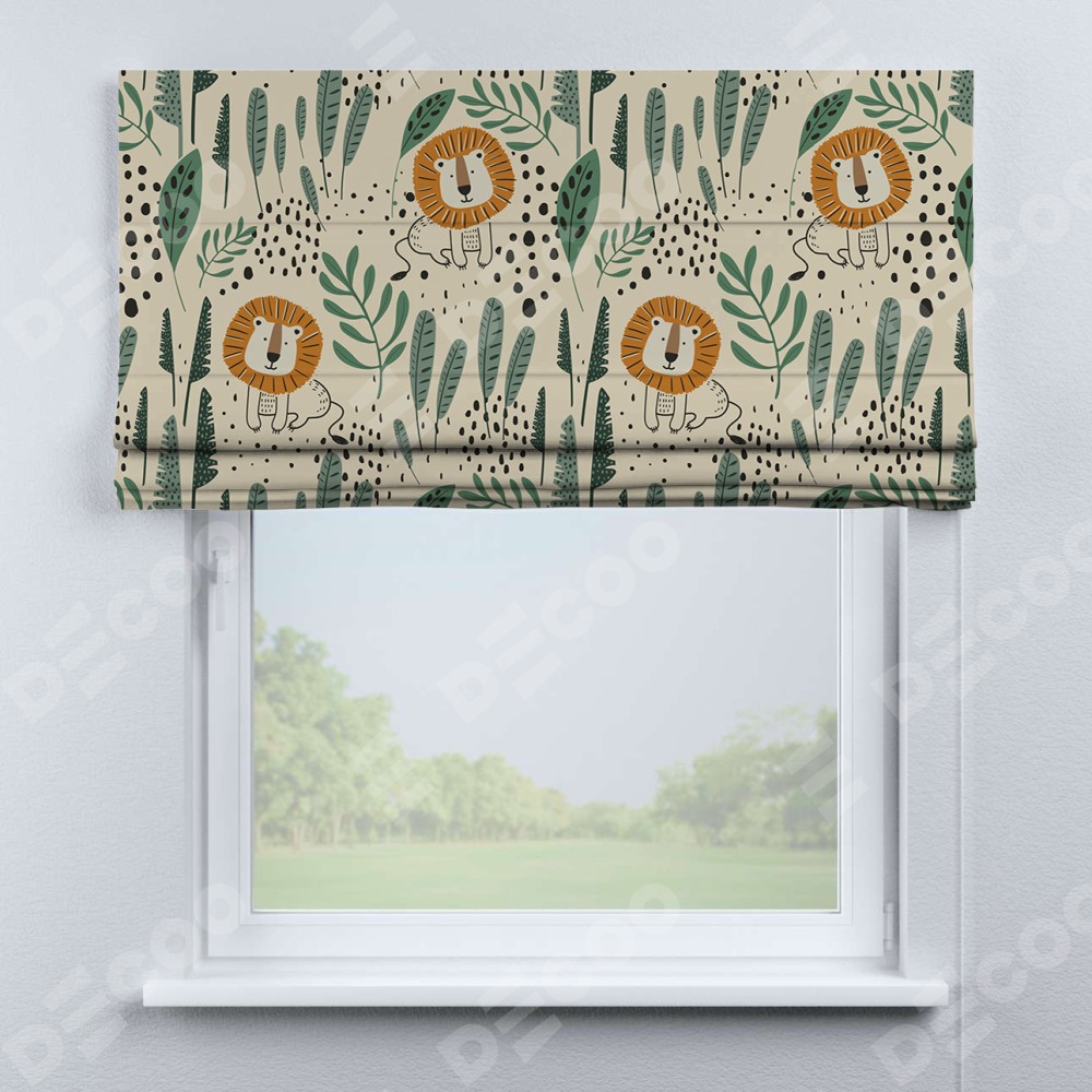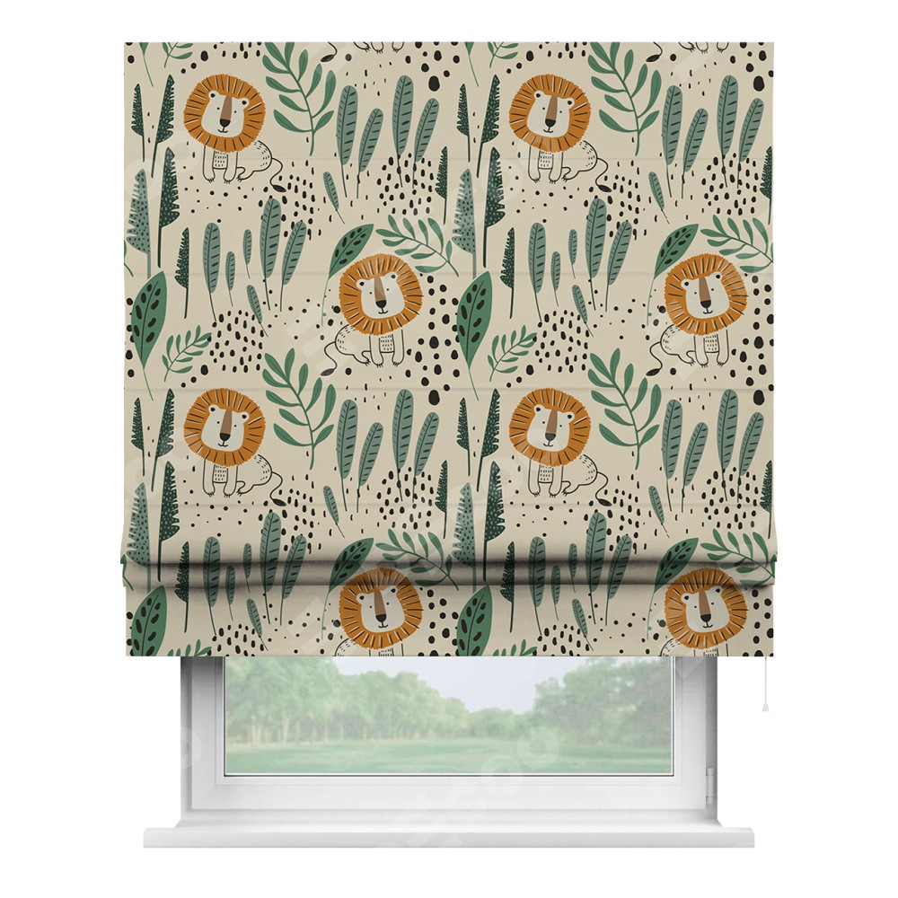 Римская штора «Кортин» для проема «Лев из джунглей»