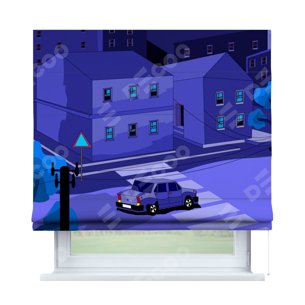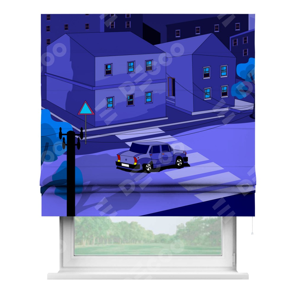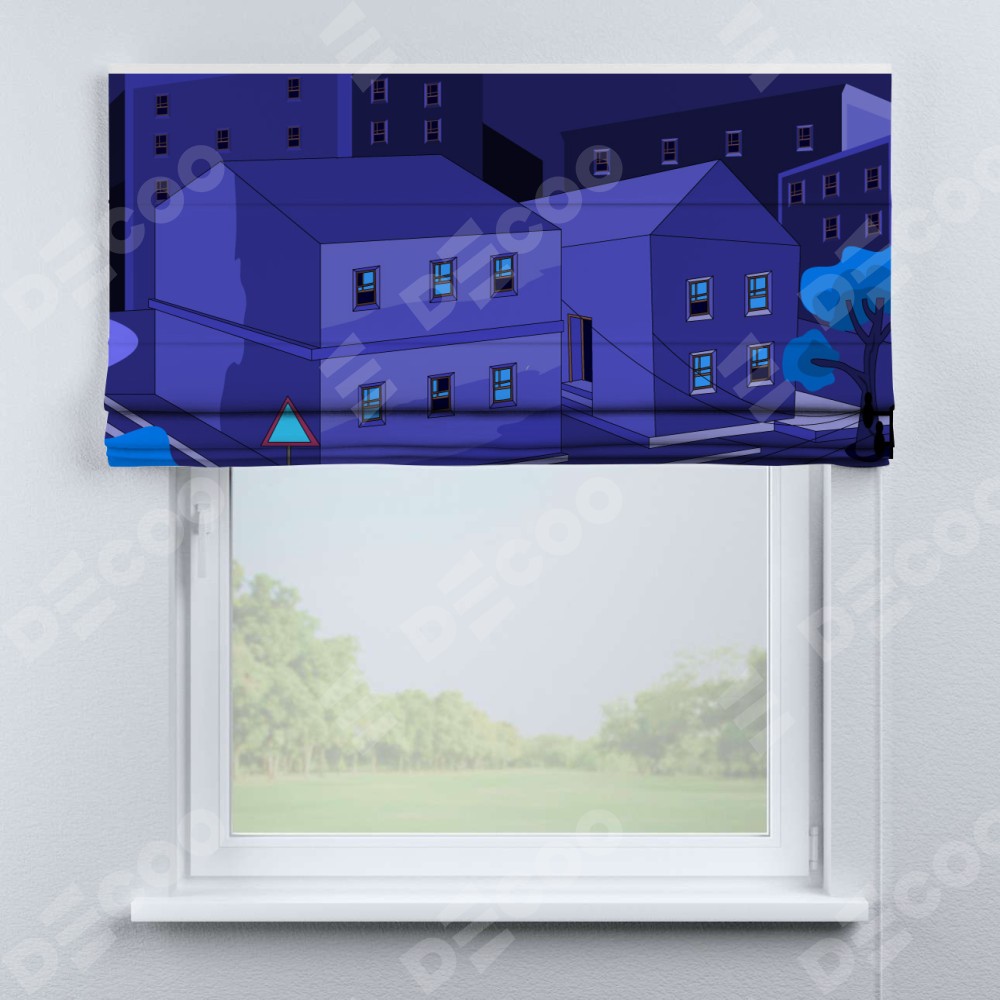 Римская штора производителя «Cortin», используется для проёма, пошита из ткани блэкаут с нанесением сублимационной печати «Ночные улицы». Имеет универсальный механизм и подходит для монтажа: на потолок, на стену и в нишу.