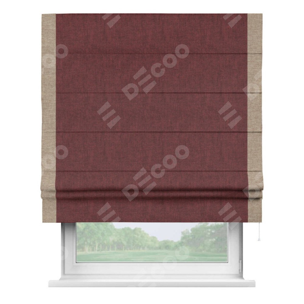 Римская штора «Кортин» с кантом Стрим Дуо, для проема, ткань лён кашемир бордовый