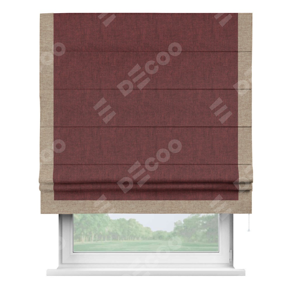 Римская штора «Кортин» с кантом Виктория, для проема, ткань лён кашемир бордовый