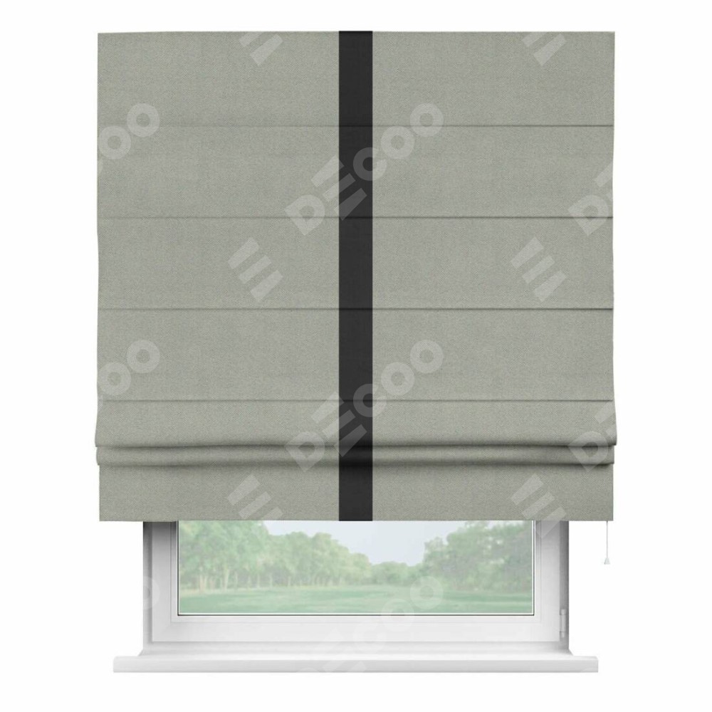 Римская штора производителя «Cortin», используется для проёма, пошита из ткани блэкаут однотонный серый, артикул ткани 88292. Отделка шторы кантом «Хайвей», ткань для канта используется из блэкаута однотонного разной расцветки на выбор. Имеет универсальный механизм и подходит для монтажа: на потолок, на стену и в нишу.