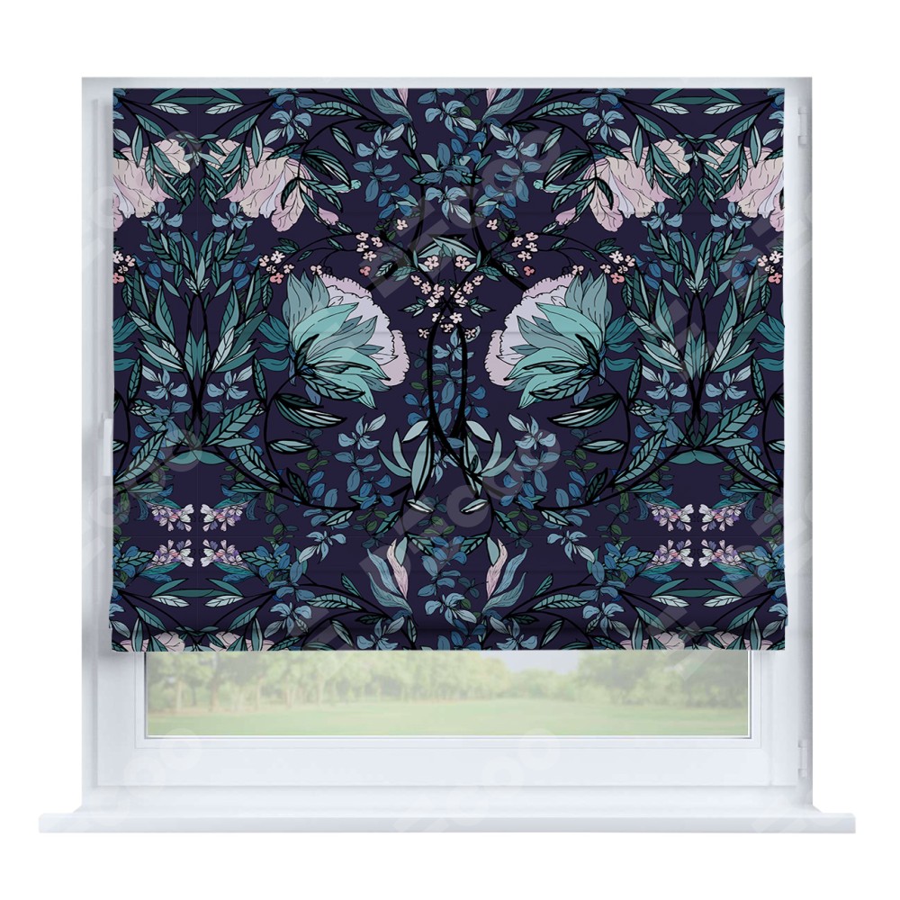 Римская штора «Кортин» на створку «Цветочный индиго»