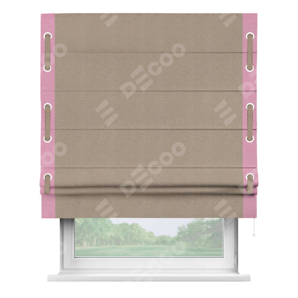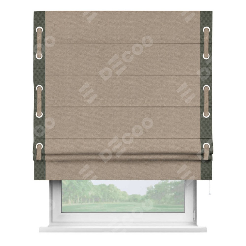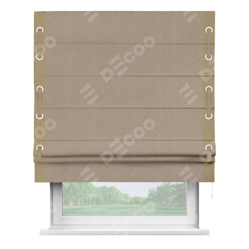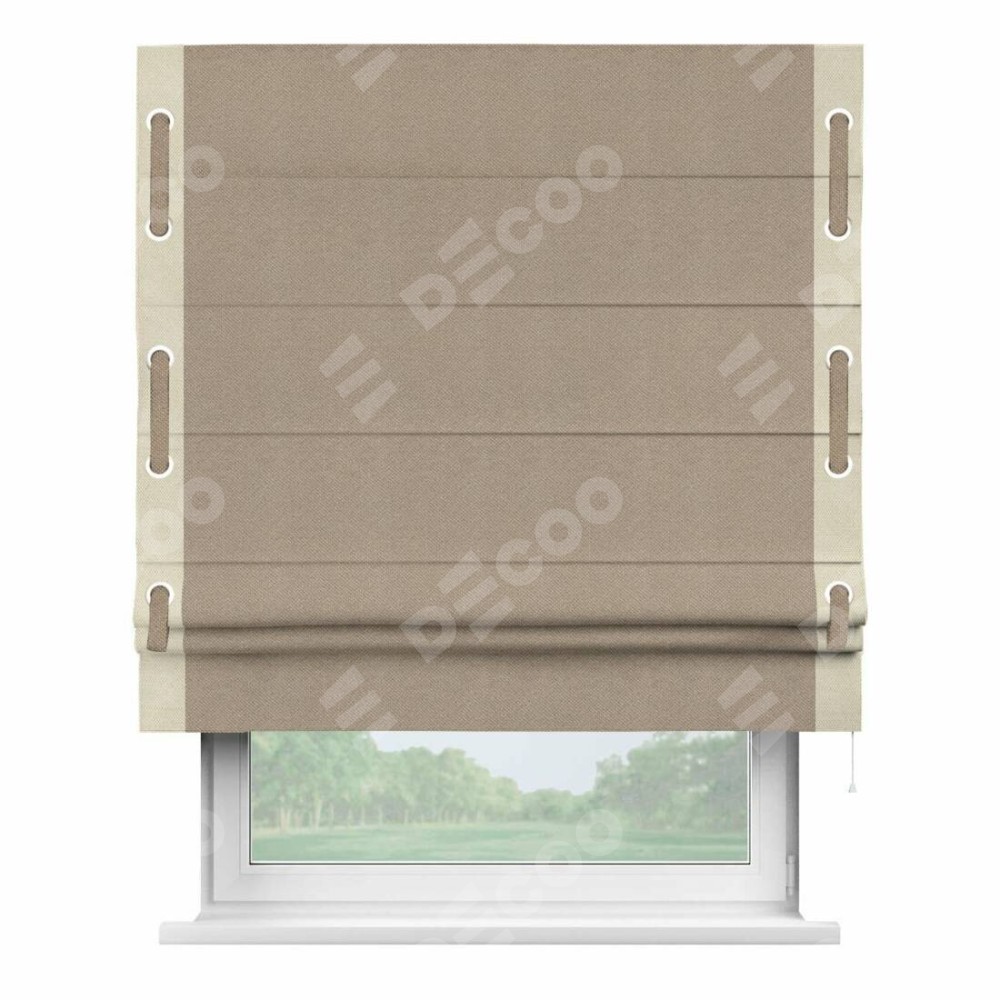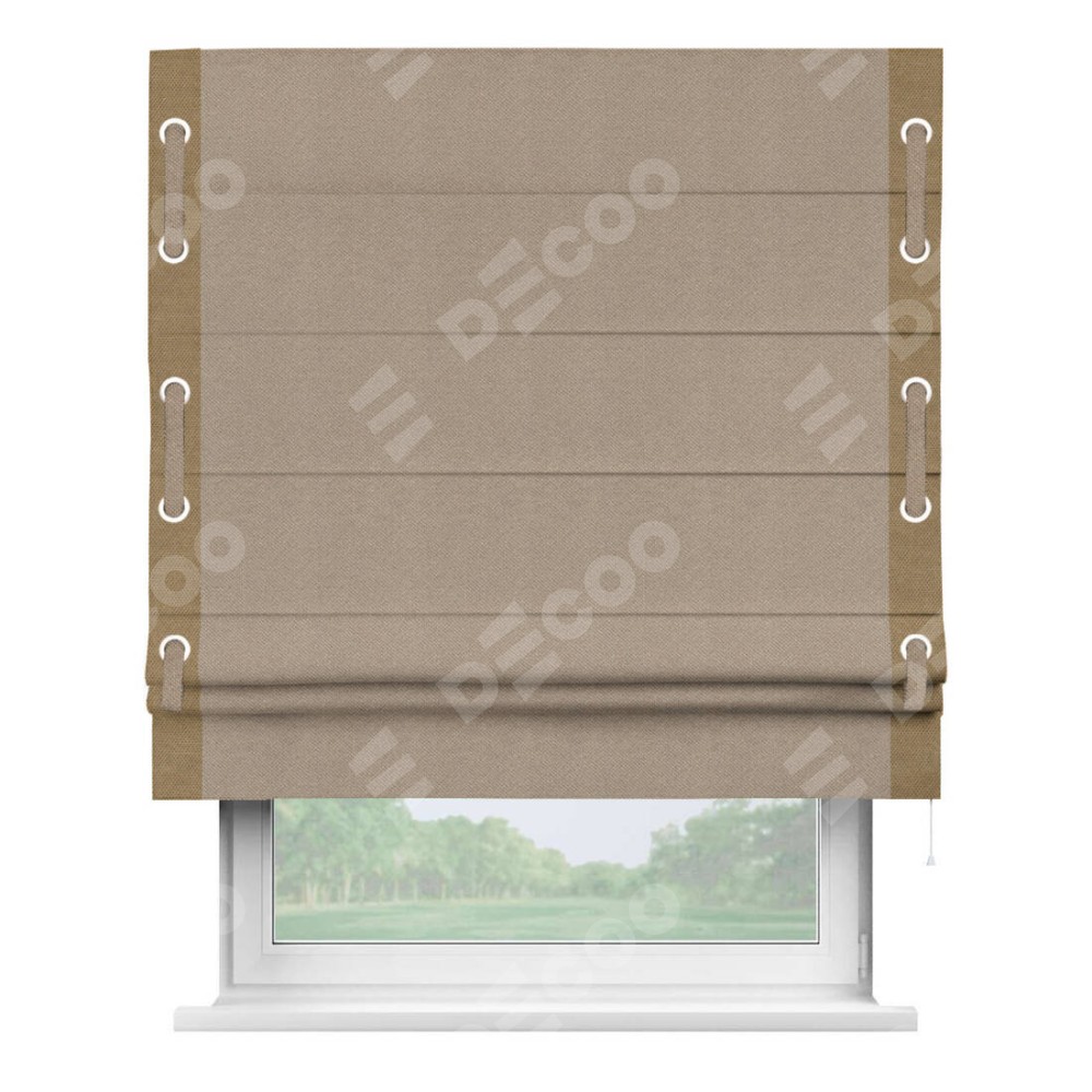 Римская штора «Кортин» с кантом Стрим Дуо (люверсы с пояском), для проема, ткань лён димаут, светло-бежевый