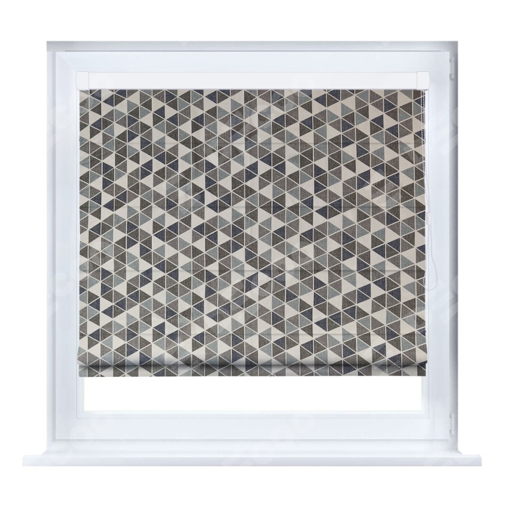 Римская штора «Кортин» на створку, ткань димаут «Треугольники синие»