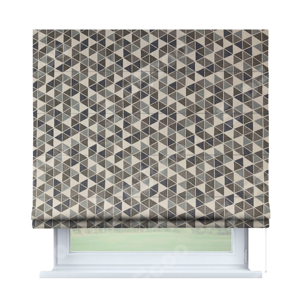 Римская штора «Кортин» для проема, ткань димаут «Треугольники синие»