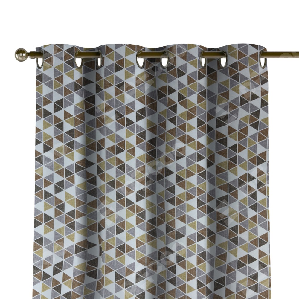 Комплект прямых штор, от производителя «Cortin», пошиты из ткани димаут «Треугольники коричневые», артикул ткани 23021. Данная модель пошита на люверсах, комплектуется на выбор круглым карнизом и подходит для монтажа на стену или потолок. Прямые шторы на люверсах шьются по стандарту с коэффициентом 1/2 (на 100 см. ширины проёма 200 см. ширины ткани), отличительным преимуществом данной модели является простой способ монтажа. Достаточно повесить ее на трубу и штора готова!