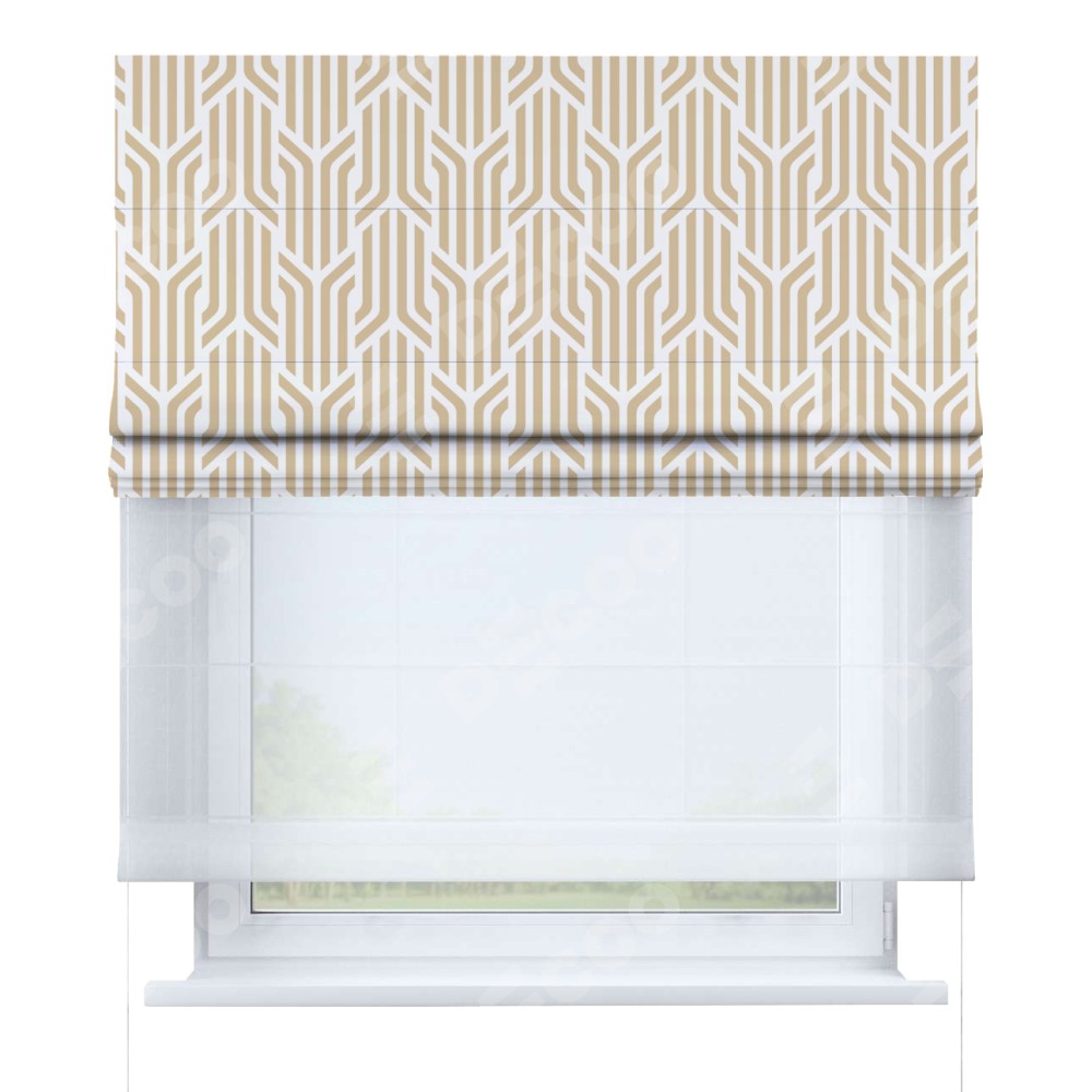Римская штора день-ночь производителя «Cortin», используется для проёма, пошита из двух полотен, с лицевой блэкаут с нанесением сублимационной печати «Виват», вторая ткань тюль (по стандарту комплектуется тюль белого цвета артикул V-01). Имеет универсальный механизм и подходит для монтажа: на потолок, на стену и в нишу.