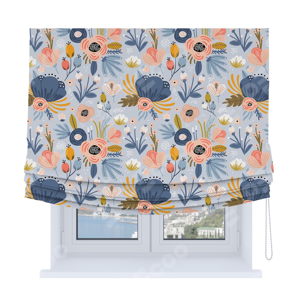 Римская штора Soft производителя «Cortin», используется для проёма, пошита из ткани блэкаут с нанесением сублимационной печати «Волшебные цветы». Имеет универсальный механизм и подходит для монтажа: на потолок, на стену и в нишу. В отличие от стандартных римских штор, римская штора Soft не имеет горизонтальных вставок и нижнего отвеса. Это позволяет ткани произвольно драпироваться в свободные мягкие складки.