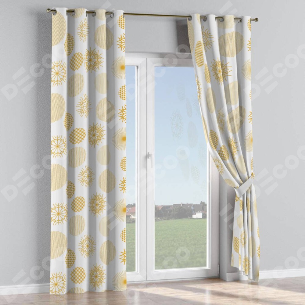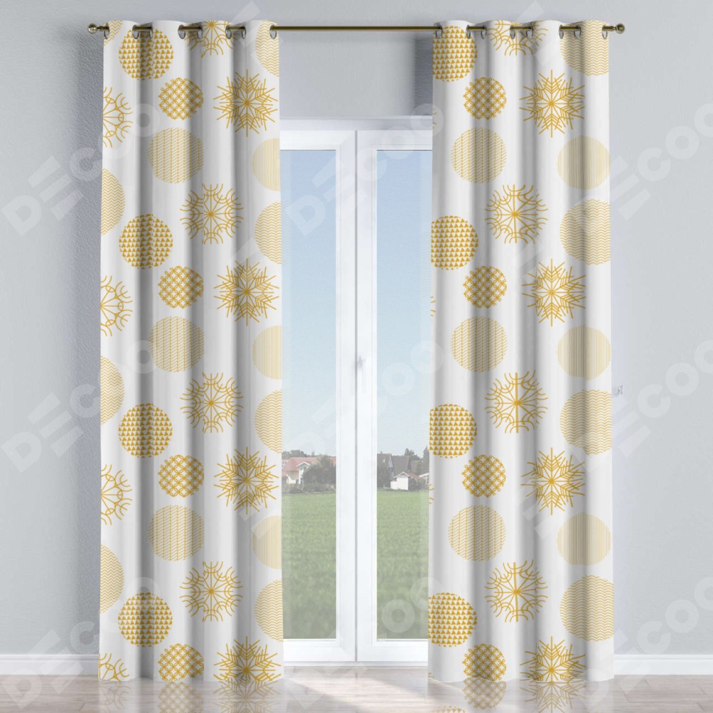 Комплект прямых штор, от производителя «Cortin», пошиты из ткани блэкаут с нанесением сублимационной печати «Золотые шары». Данная модель пошита на люверсах, комплектуется на выбор круглым карнизом и подходит для монтажа на стену или потолок. Прямые шторы на люверсах шьются по стандарту с коэффициентом 1/2 (на 100 см. ширины проёма 200 см. ширины ткани), отличительным преимуществом данной модели является простой способ монтажа. Достаточно повесить ее на трубу и штора готова!