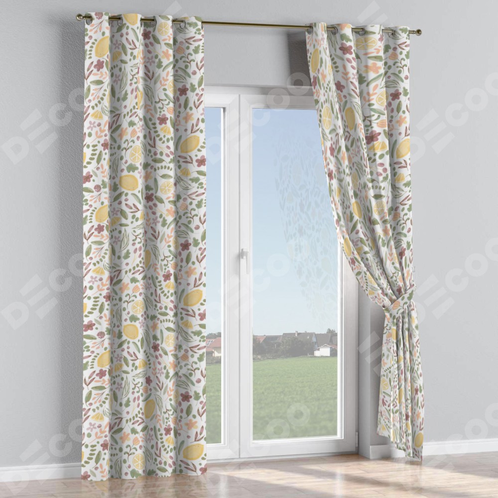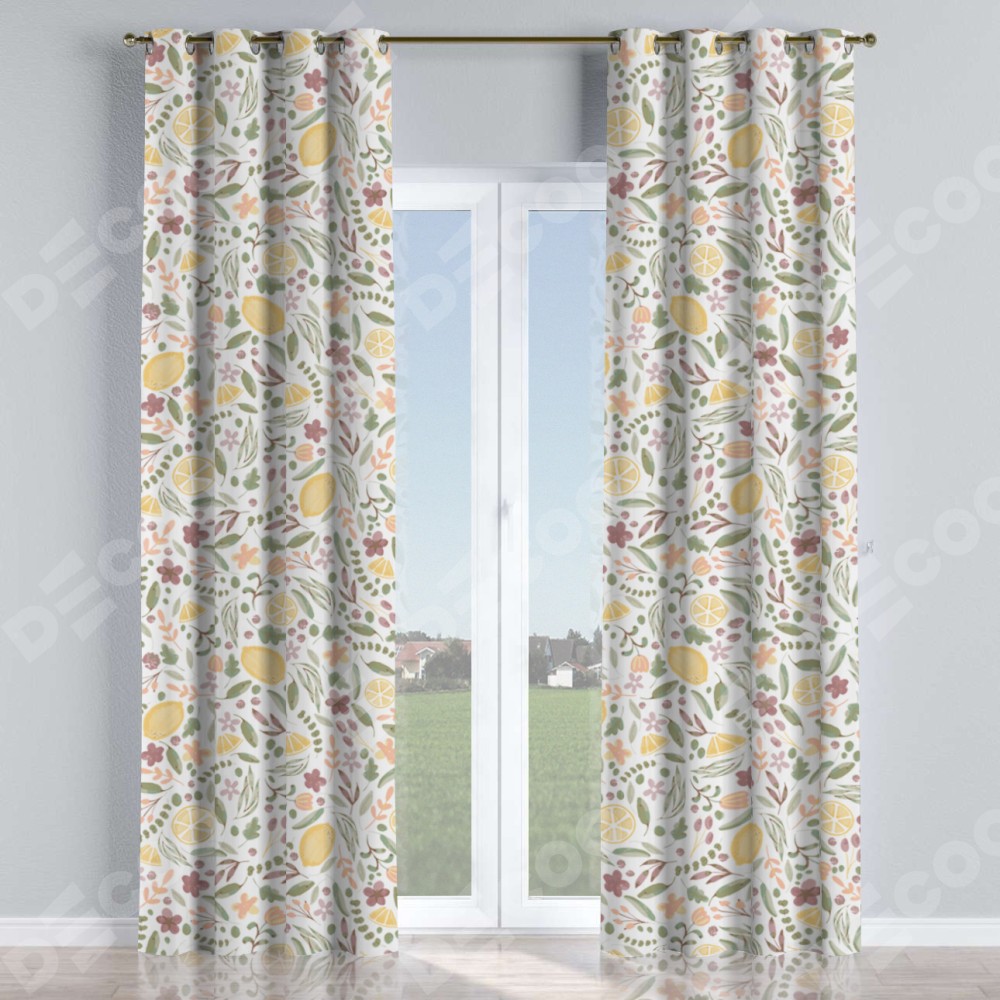 Комплект прямых штор, от производителя «Cortin», пошиты из ткани блэкаут с нанесением сублимационной печати «Лимоны и цветы». Данная модель пошита на люверсах, комплектуется на выбор круглым карнизом и подходит для монтажа на стену или потолок. Прямые шторы на люверсах шьются по стандарту с коэффициентом 1/2 (на 100 см. ширины проёма 200 см. ширины ткани), отличительным преимуществом данной модели является простой способ монтажа. Достаточно повесить ее на трубу и штора готова!