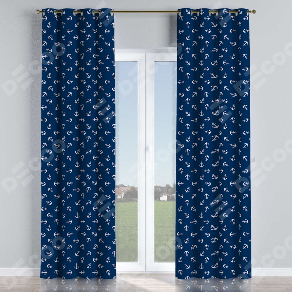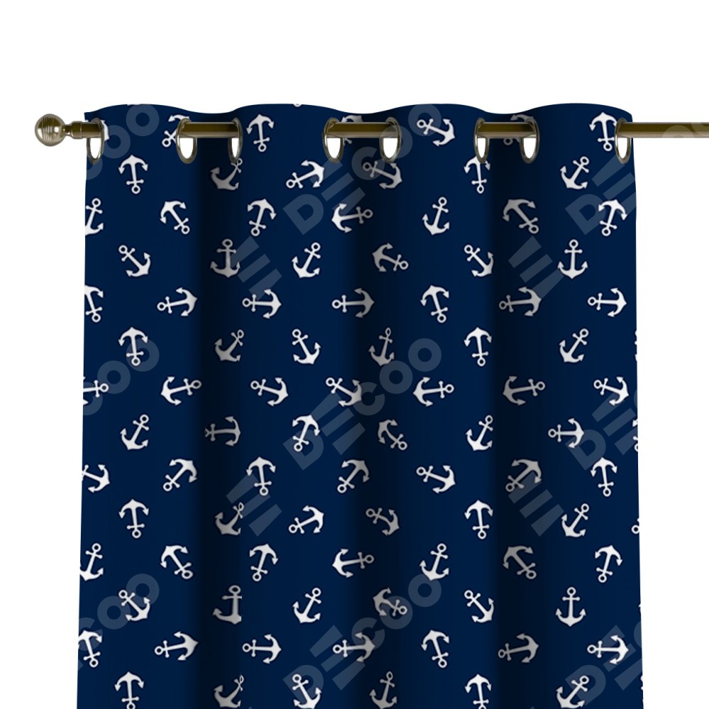 Комплект прямых штор, от производителя «Cortin», пошиты из ткани блэкаут с нанесением сублимационной печати «Морские якори». Данная модель пошита на люверсах, комплектуется на выбор круглым карнизом и подходит для монтажа на стену или потолок. Прямые шторы на люверсах шьются по стандарту с коэффициентом 1/2 (на 100 см. ширины проёма 200 см. ширины ткани), отличительным преимуществом данной модели является простой способ монтажа. Достаточно повесить ее на трубу и штора готова!