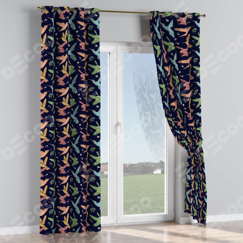 Комплект прямых штор, от производителя «Cortin», пошиты из ткани блэкаут с нанесением сублимационной печати «Птицы и цветы». Данная модель пошита на люверсах, комплектуется на выбор круглым карнизом и подходит для монтажа на стену или потолок. Прямые шторы на люверсах шьются по стандарту с коэффициентом 1/2 (на 100 см. ширины проёма 200 см. ширины ткани), отличительным преимуществом данной модели является простой способ монтажа. Достаточно повесить ее на трубу и штора готова!