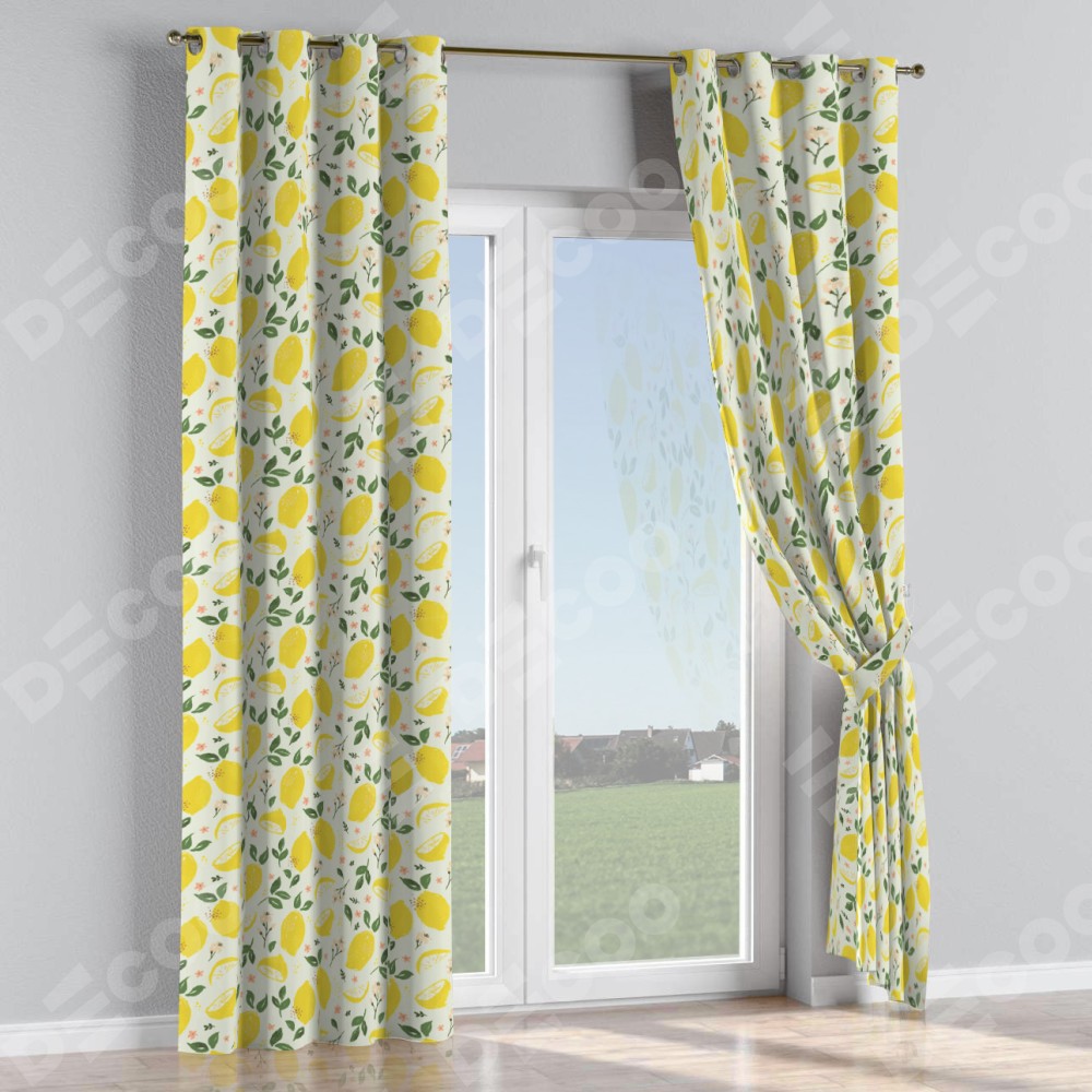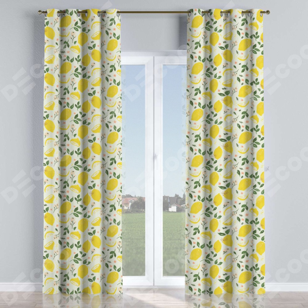 Комплект прямых штор, от производителя «Cortin», пошиты из ткани блэкаут с нанесением сублимационной печати «Сочные лимоны». Данная модель пошита на люверсах, комплектуется на выбор круглым карнизом и подходит для монтажа на стену или потолок. Прямые шторы на люверсах шьются по стандарту с коэффициентом 1/2 (на 100 см. ширины проёма 200 см. ширины ткани), отличительным преимуществом данной модели является простой способ монтажа. Достаточно повесить ее на трубу и штора готова!