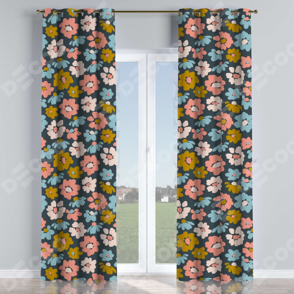 Комплект прямых штор, от производителя «Cortin», пошиты из ткани блэкаут с нанесением сублимационной печати «Яркие цветы». Данная модель пошита на люверсах, комплектуется на выбор круглым карнизом и подходит для монтажа на стену или потолок. Прямые шторы на люверсах шьются по стандарту с коэффициентом 1/2 (на 100 см. ширины проёма 200 см. ширины ткани), отличительным преимуществом данной модели является простой способ монтажа. Достаточно повесить ее на трубу и штора готова!