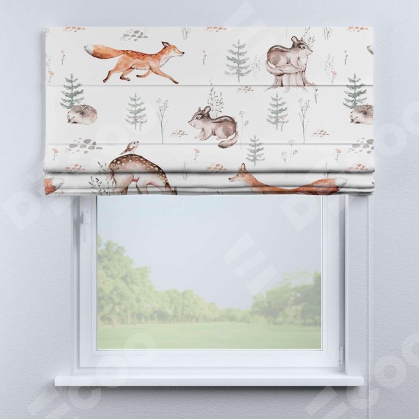 Римская штора производителя «Cortin», используется для проёма, пошита из ткани блэкаут с нанесением сублимационной печати «Пушистый питомник». Имеет универсальный механизм и подходит для монтажа: на потолок, на стену и в нишу.