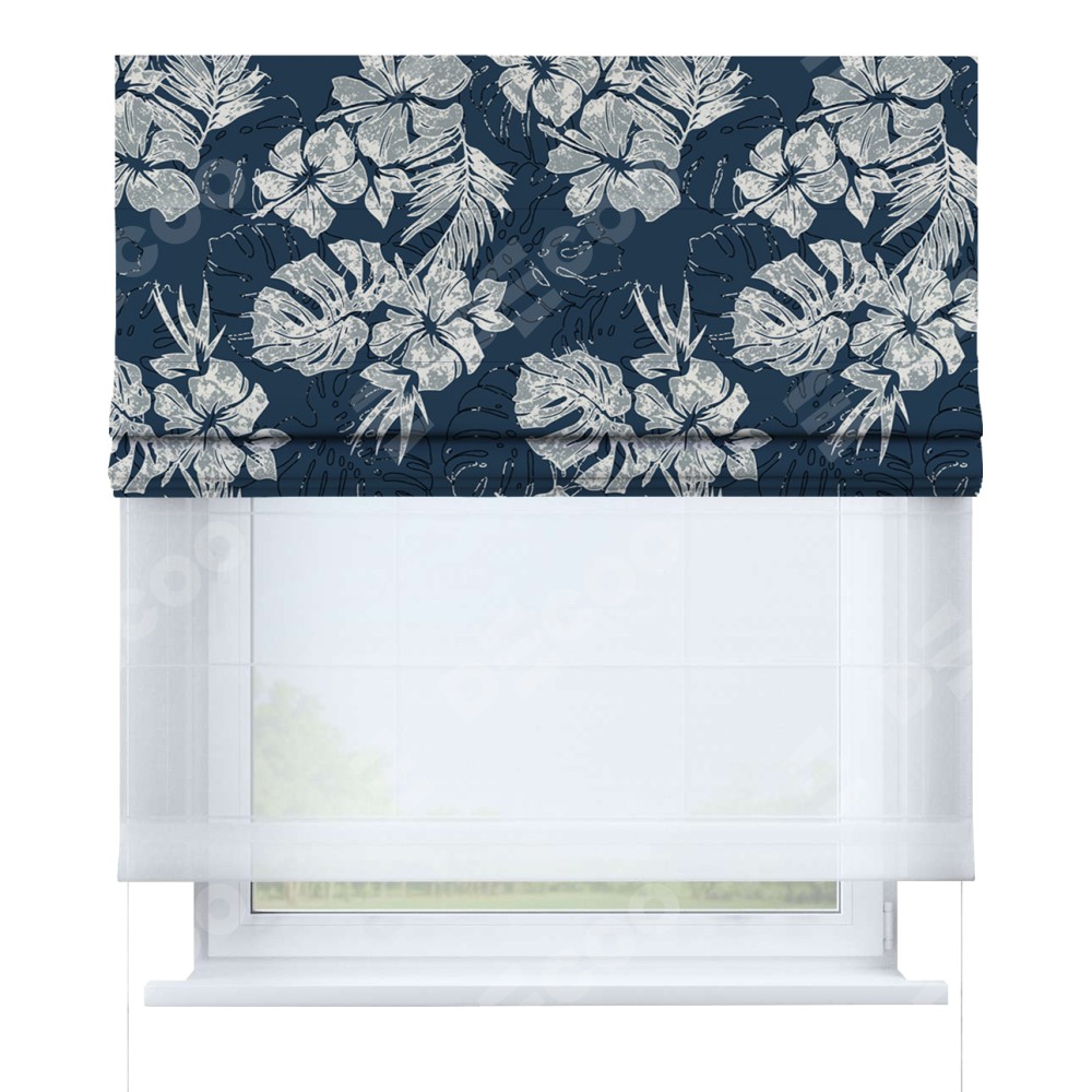 Римская штора день-ночь производителя «Cortin», используется для проёма, пошита из двух полотен, с лицевой блэкаут с нанесением сублимационной печати «Лунное сияние», вторая ткань тюль (по стандарту комплектуется тюль белого цвета артикул V-01). Имеет универсальный механизм и подходит для монтажа: на потолок, на стену и в нишу.