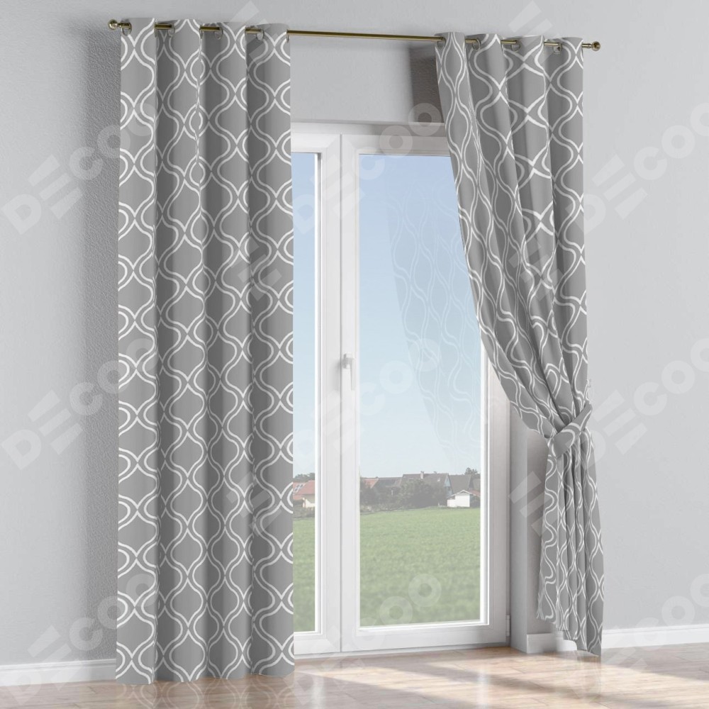 Комплект прямых штор, от производителя «Cortin», пошиты из ткани блэкаут с нанесением сублимационной печати «Тайны востока серый». Данная модель пошита на люверсах, комплектуется на выбор круглым карнизом и подходит для монтажа на стену или потолок. Прямые шторы на люверсах шьются по стандарту с коэффициентом 1/2 (на 100 см. ширины проёма 200 см. ширины ткани), отличительным преимуществом данной модели является простой способ монтажа. Достаточно повесить ее на трубу и штора готова!
