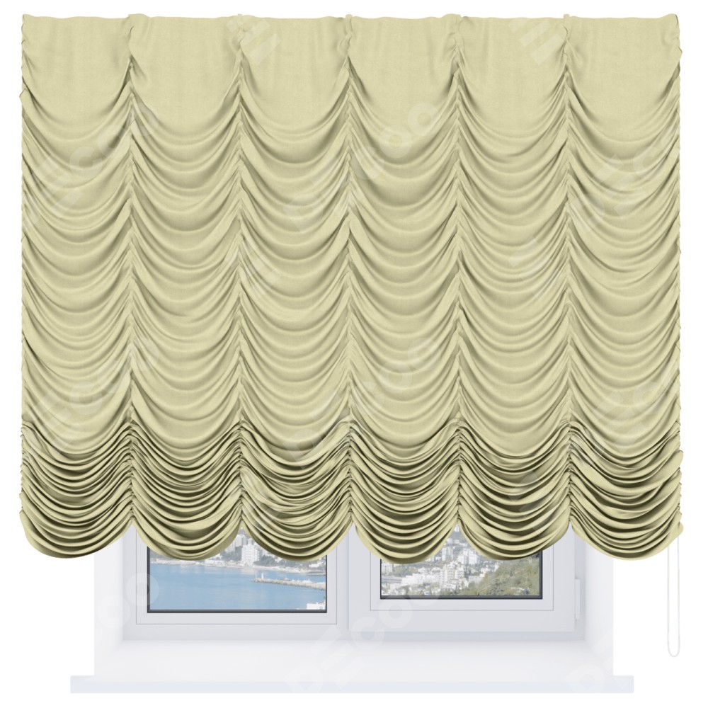 Французская штора производителя «Cortin», используется для проёма, пошита из ткани софт однотонный молочный, артикул ткани 11938. Имеет универсальный механизм и подходит для монтажа: на потолок и на стену.