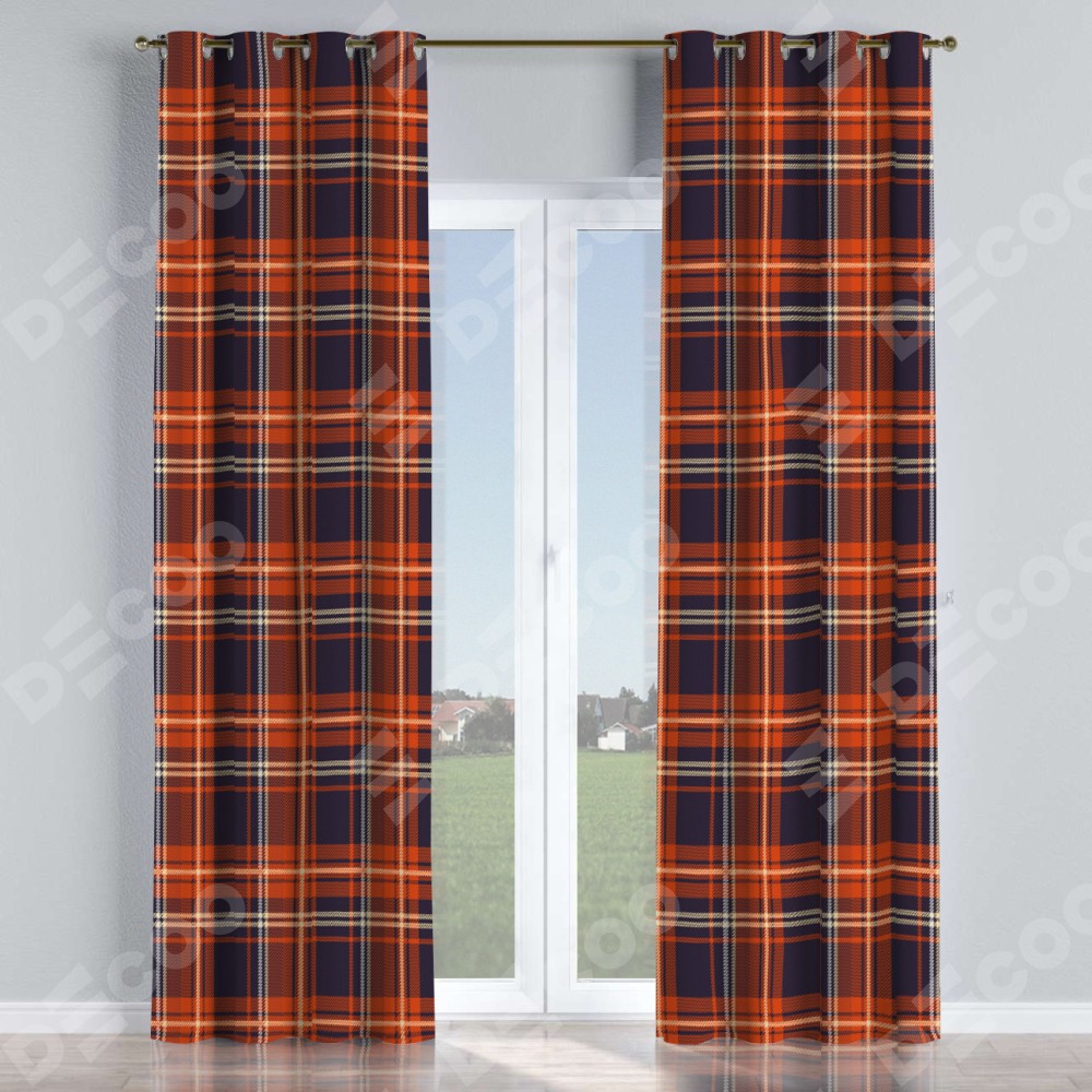 Комплект штор на люверсах «Сине-оранжевая клетка»
