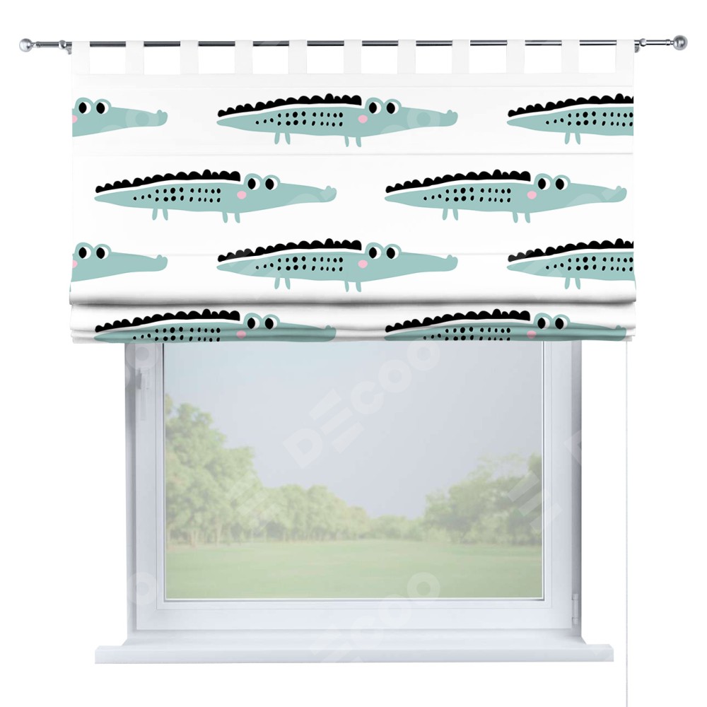 Римская штора производителя «Cortin», используется для проёма, пошита из ткани блэкаут с нанесением сублимационной печати «Мистер Крок». Данная модель пошита на петлях, комплектуется на выбор круглым карнизом и подходит для монтажа на стену. Римская штора на петлях имеет простую систему регулировки высоты, отличительным преимуществом данной модели является простой способ монтажа. Достаточно повесить ее на трубу и штора готова!