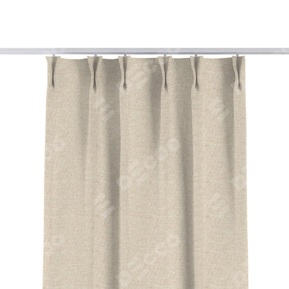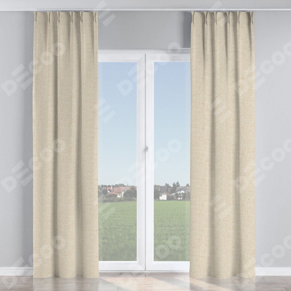 Комплект прямых штор, от производителя «Cortin», пошиты из ткани стиф димаут молочный, артикул ткани 18082. С изнаночной стороны в верхней части штор пристрачивается шторная лента с декоративными складками «Кустик». Для создания элегантных складок прямые шторы шьются по стандарту с коэффициентом 1:2 (на 100 см. ширины проёма 200 см. ширины ткани).