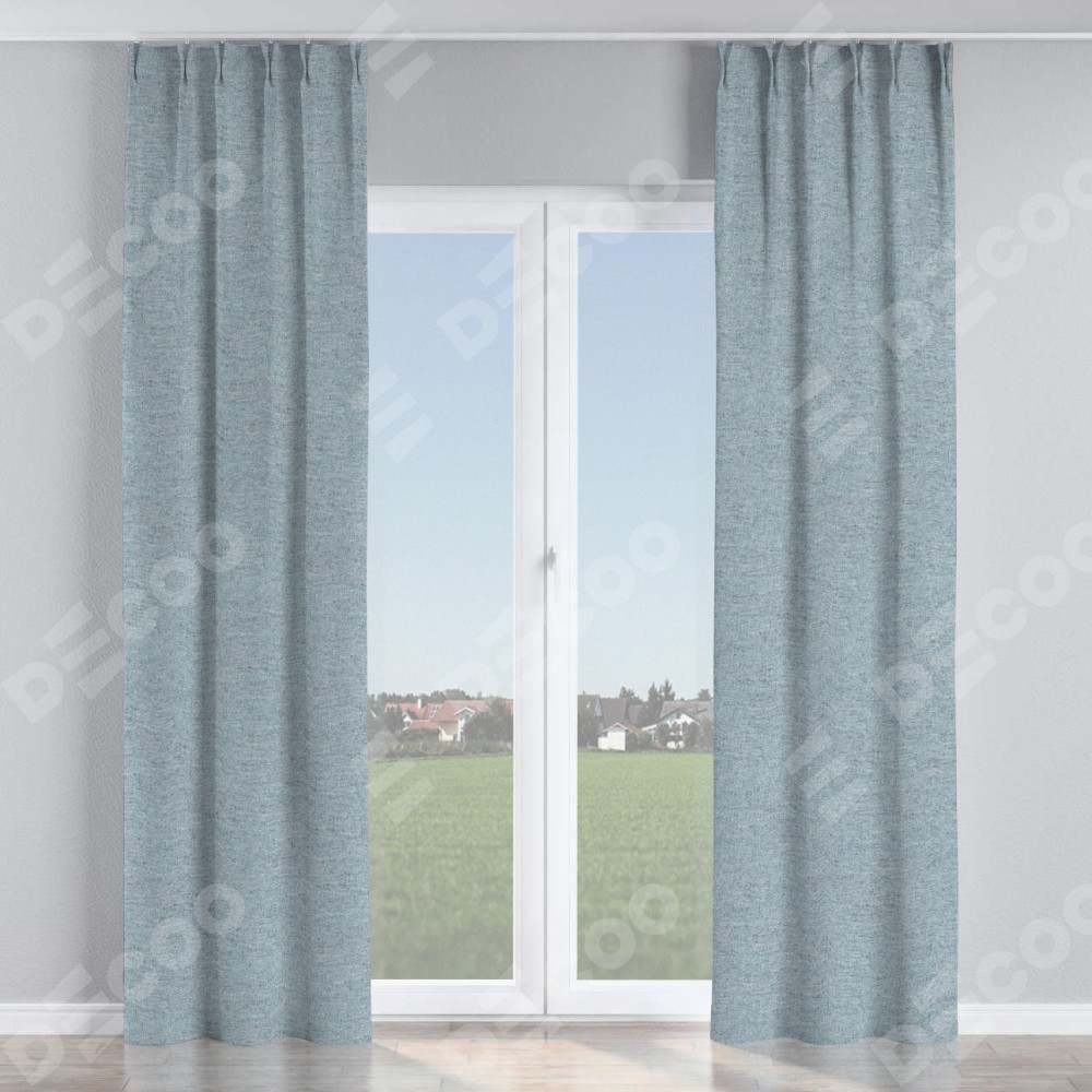 Комплект прямых штор, от производителя «Cortin», пошиты из ткани стиф димаут светло-серый, артикул ткани 44025. С изнаночной стороны в верхней части штор пристрачивается шторная лента с декоративными складками «Кустик». Для создания элегантных складок прямые шторы шьются по стандарту с коэффициентом 1:2 (на 100 см. ширины проёма 200 см. ширины ткани).
