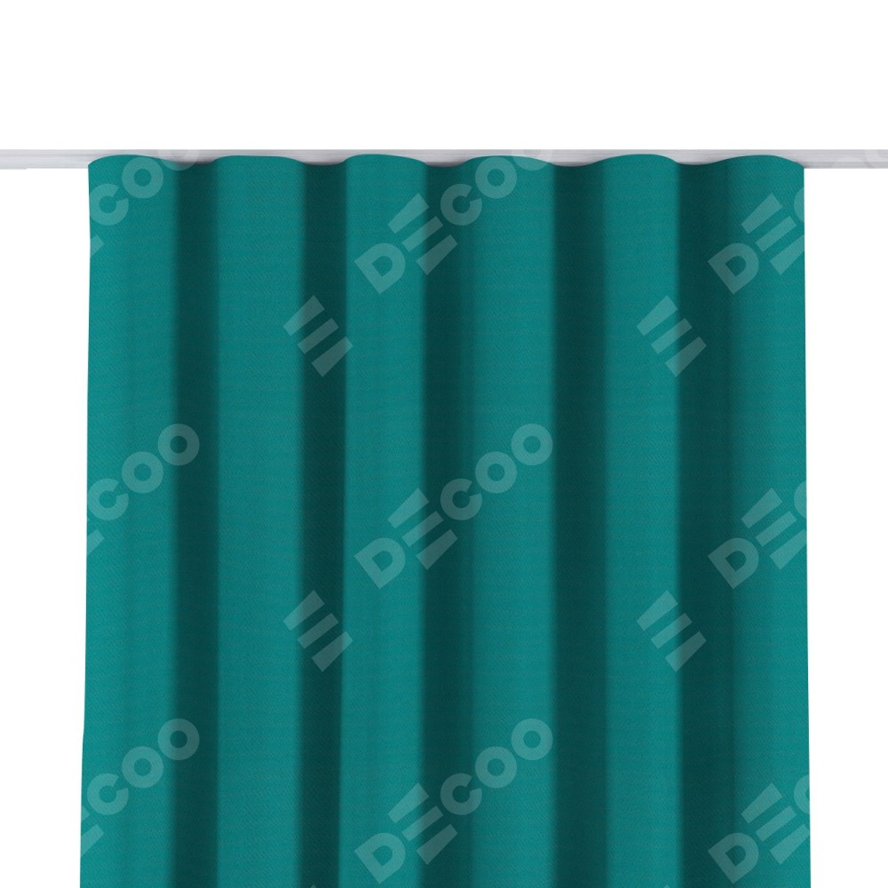 Комплект прямых штор, от производителя «Cortin», пошиты из ткани блэкаут однотонный бирюзовый, артикул ткани 88297. С изнаночной стороны в верхней части штор пристрачивается шторная лента с декоративными складками «Волна». Для создания элегантных складок прямые шторы шьются по стандарту с коэффициентом 1:2 (на 100 см. ширины проёма 200 см. ширины ткани).