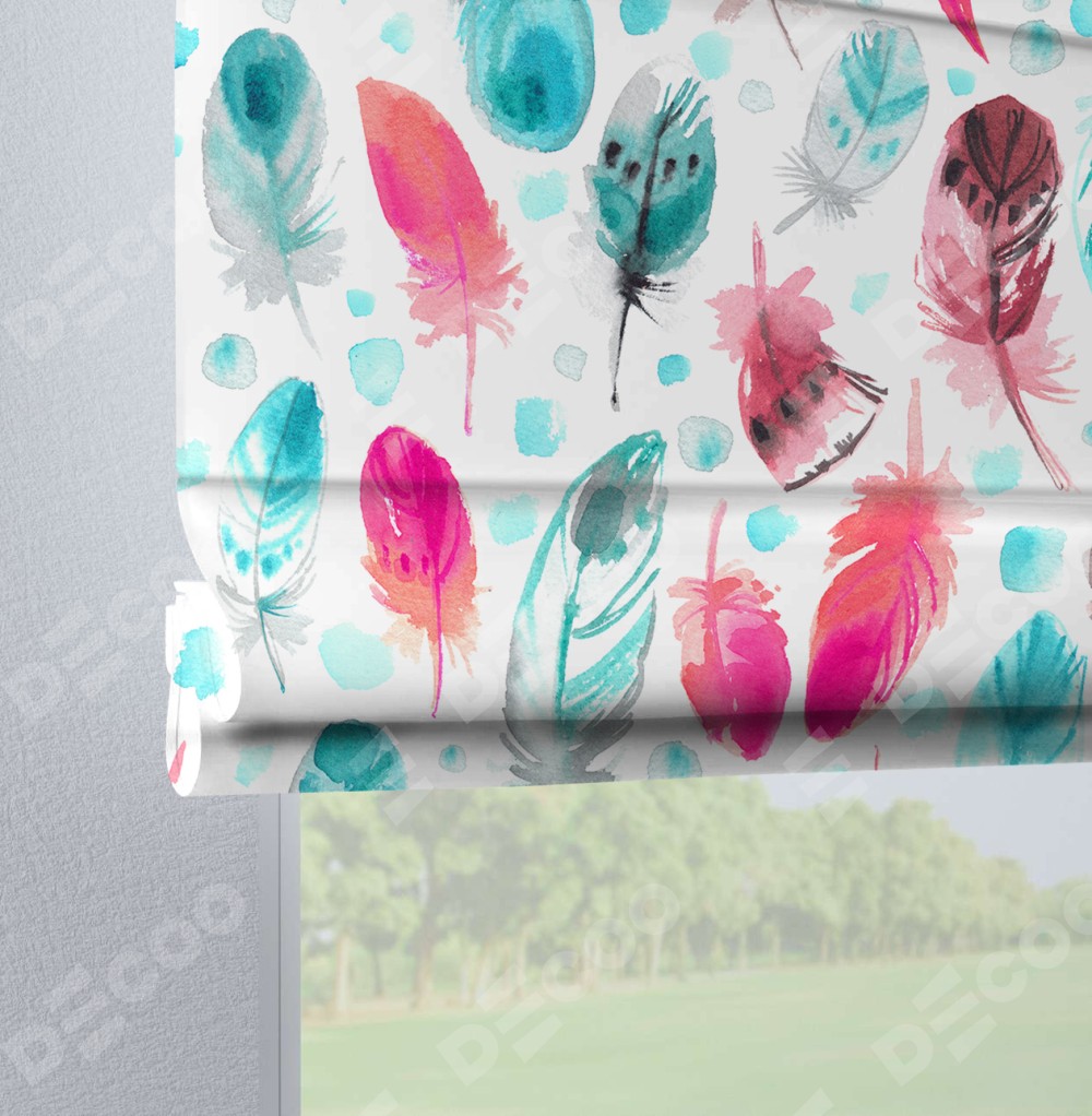 Римская штора производителя «Cortin», используется для проёма, пошита из ткани блэкаут с нанесением сублимационной печати «Перья». Данная модель пошита на петлях, комплектуется на выбор круглым карнизом и подходит для монтажа на стену. Римская штора на петлях имеет простую систему регулировки высоты, отличительным преимуществом данной модели является простой способ монтажа. Достаточно повесить ее на трубу и штора готова!