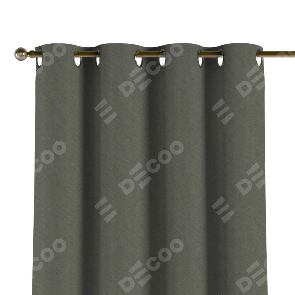 Комплект прямых штор, от производителя «Cortin», пошиты из ткани блэкаут однотонный тёмно-серый, артикул ткани 29332−1. Данная модель пошита на люверсах, комплектуется на выбор круглым карнизом и подходит для монтажа на стену или потолок. Прямые шторы на люверсах шьются по стандарту с коэффициентом 1/2 (на 100 см. ширины проёма 200 см. ширины ткани), отличительным преимуществом данной модели является простой способ монтажа. Достаточно повесить ее на трубу и штора готова!