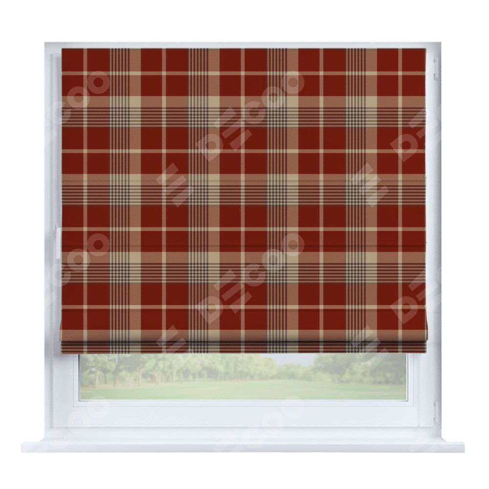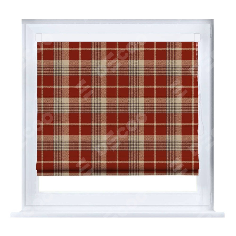 Римская штора производителя «Cortin», устанавливается на створку окна, пошита из ткани блэкаут с нанесением сублимационной печати «Бежево-бордовая клетка». Штора шьётся по индивидуальным размерам, для данного типа римской шторы возможная ширина от 35 до 150 см., высота до 250 см.