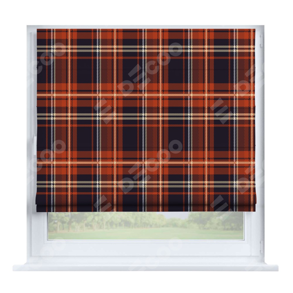 Римская штора производителя «Cortin», устанавливается на створку окна, пошита из ткани блэкаут с нанесением сублимационной печати «Сине-оранжевая клетка». Штора шьётся по индивидуальным размерам, для данного типа римской шторы возможная ширина от 35 до 150 см., высота до 250 см.
