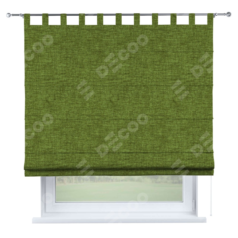 Римская штора производителя «Cortin», используется для проёма, пошита из ткани рогожка димаут салатовый, артикул ткани 80423. Данная модель пошита на петлях, комплектуется на выбор круглым карнизом и подходит для монтажа на стену. Римская штора на петлях имеет простую систему регулировки высоты, отличительным преимуществом данной модели является простой способ монтажа. Достаточно повесить ее на трубу и штора готова!