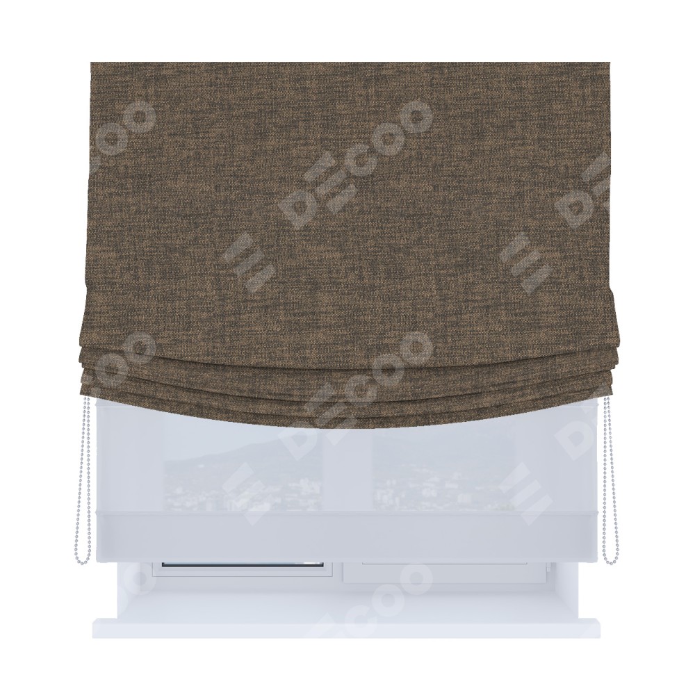 Римская штора день-ночь производителя «Cortin», используется для проёма, пошита из двух полотен, с лицевой стороны рогожка димаут коричневый артикул 80420, вторая ткань тюль (по стандарту комплектуется тюль белого цвета артикул V-01). Имеет универсальный механизм и подходит для монтажа: на потолок, на стену и в нишу. Удобное управление каждой шторой отдельно.