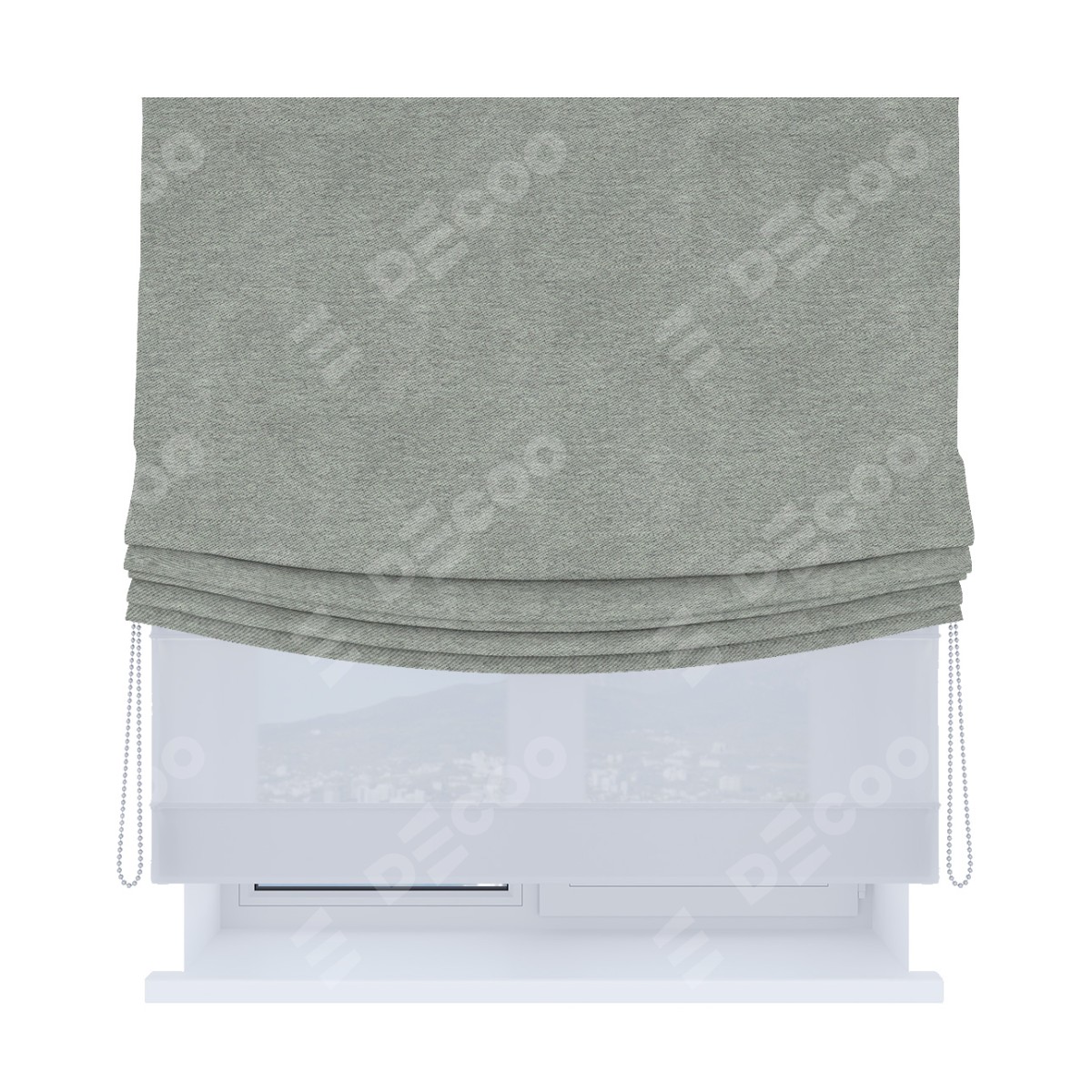 Римская штора день-ночь производителя «Cortin», используется для проёма, пошита из двух полотен, с лицевой стороны твид блэкаут светло-серый артикул 21576, вторая ткань тюль (по стандарту комплектуется тюль белого цвета артикул V-01). Имеет универсальный механизм и подходит для монтажа: на потолок, на стену и в нишу. Удобное управление каждой шторой отдельно.