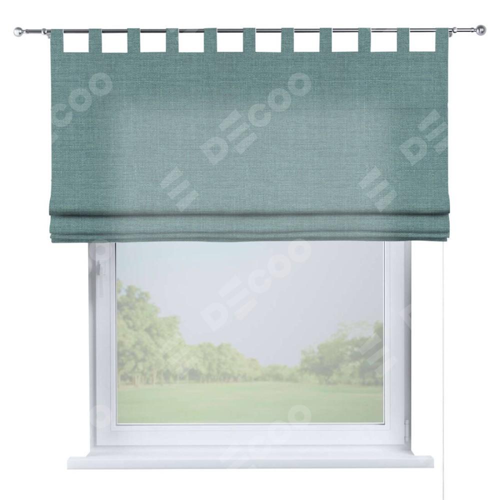 Римская штора на петлях «Кортин», выполнена в ткани лён голубой