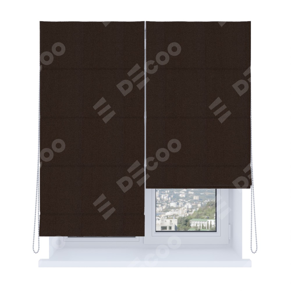 Римская штора производителя «Cortin», используется для проёма, пошита из ткани блэкаут однотонный тёмно-коричневый, артикул ткани 88287. Имеет универсальный механизм и подходит для монтажа: на потолок, на стену и в нишу. Удобное управление каждой шторой отдельно.