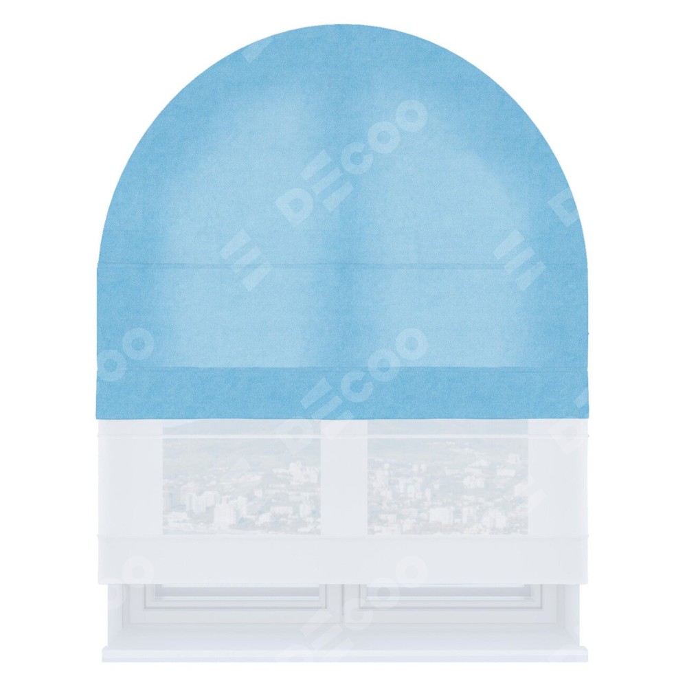 Римская штора день-ночь производителя «Cortin», используется для арочного проёма, пошита из двух полотен, с лицевой стороны вельвет голубой артикул 85544, вторая ткань тюль (по стандарту комплектуется тюль белого цвета артикул V-01). Штора шьётся по индивидуальным размерам, для данного типа римской шторы возможная ширина от 60 до 300 см. Удобное управление каждой шторой отдельно.