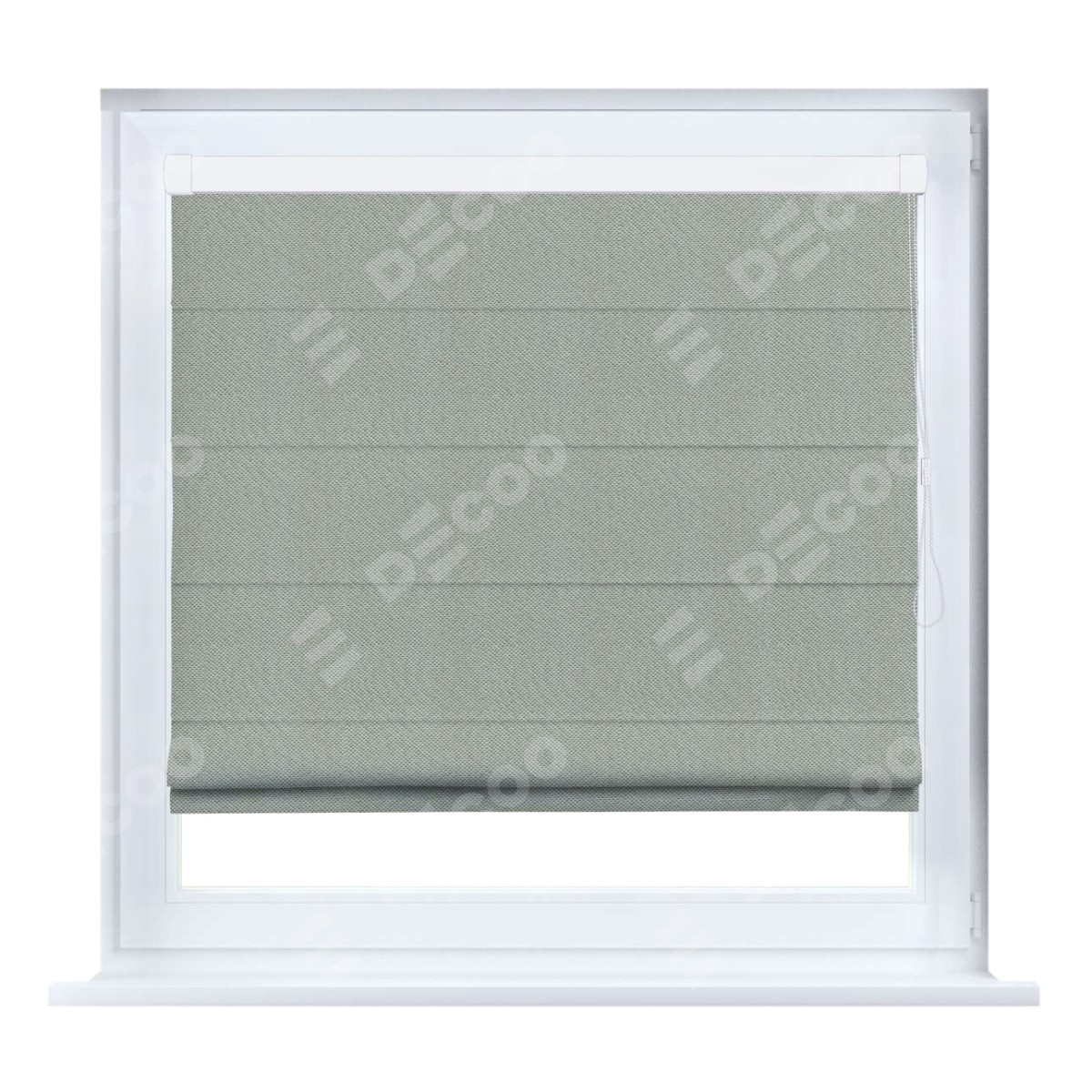 Римская штора кассетного типа, производителя «Cortin», устанавливается только на пластиковые окна и прилегает к стеклопакету, пошита из ткани лён димаут серый, артикул Ф3.