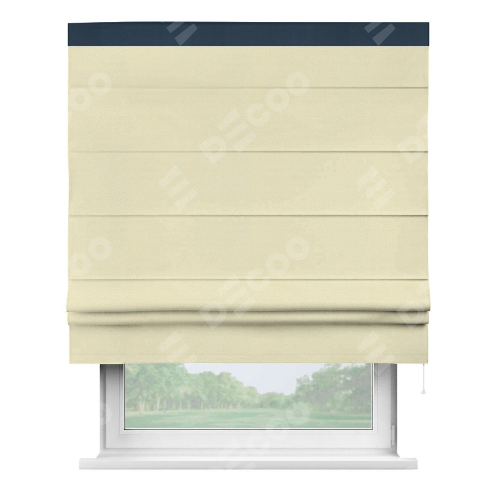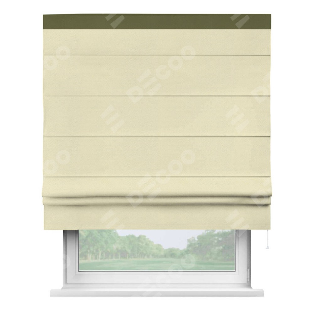 Римская штора производителя «Cortin», используется для проёма, пошита из ткани блэкаут однотонный бежевый, артикул ткани 88283. Отделка шторы кантом «Кинг», ткань для канта используется из блэкаута однотонного разной расцветки на выбор. Имеет универсальный механизм и подходит для монтажа: на потолок, на стену и в нишу.