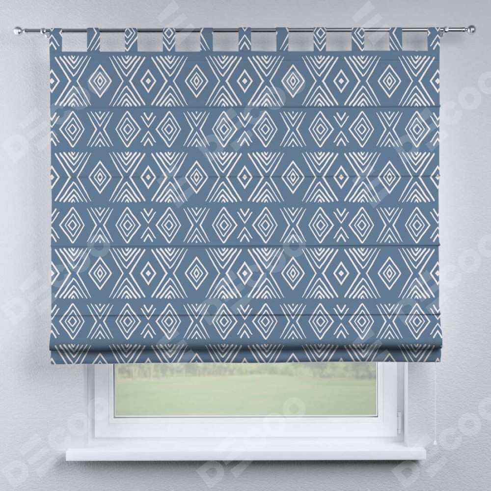 Римская штора производителя «Cortin», используется для проёма, пошита из ткани блэкаут с нанесением сублимационной печати «Графический орнамент». Данная модель пошита на петлях, комплектуется на выбор круглым карнизом и подходит для монтажа на стену. Римская штора на петлях имеет простую систему регулировки высоты, отличительным преимуществом данной модели является простой способ монтажа. Достаточно повесить ее на трубу и штора готова!