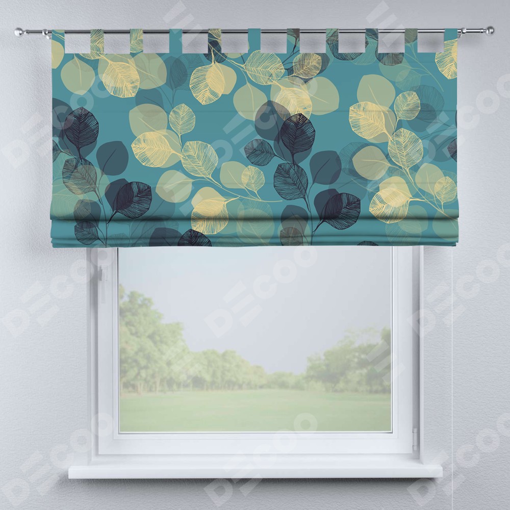 Римская штора производителя «Cortin», используется для проёма, пошита из ткани блэкаут с нанесением сублимационной печати «Листья в небе». Данная модель пошита на петлях, комплектуется на выбор круглым карнизом и подходит для монтажа на стену. Римская штора на петлях имеет простую систему регулировки высоты, отличительным преимуществом данной модели является простой способ монтажа. Достаточно повесить ее на трубу и штора готова!