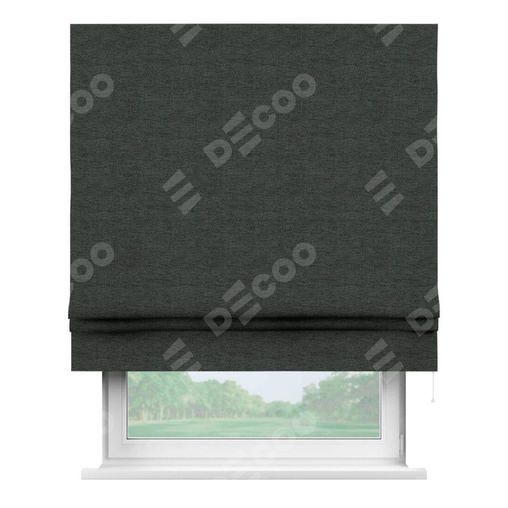 Римская штора производителя «Cortin», используется для проёма, пошита из ткани стиф димаут графит, артикул ткани 44026. Имеет универсальный механизм и подходит для монтажа: на потолок, на стену и в нишу.