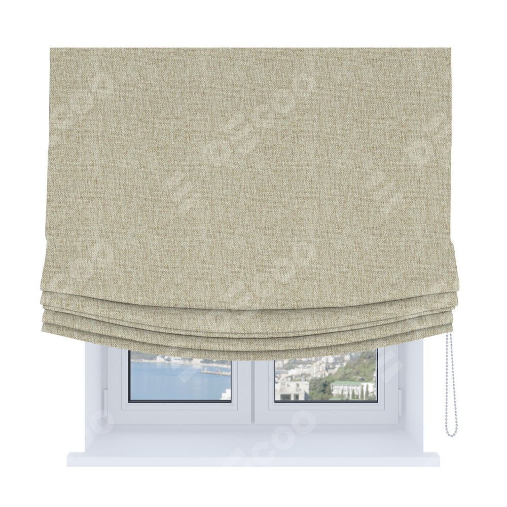 Римская штора Soft производителя «Cortin», используется для проёма, пошита из ткани стиф димаут светло-бежевый, артикул ткани 18084. Имеет универсальный механизм и подходит для монтажа: на потолок, на стену и в нишу. В отличие от стандартных римских штор, римская штора Soft не имеет горизонтальных вставок и нижнего отвеса. Это позволяет ткани произвольно драпироваться в свободные мягкие складки.