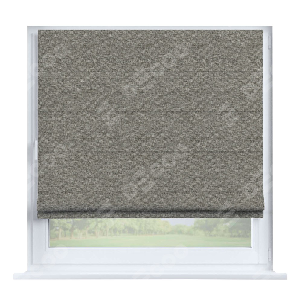 Римская штора производителя «Cortin», устанавливается на створку окна, пошита из ткани стиф димаут серо-коричневый, артикул 44028. Штора шьётся по индивидуальным размерам, для данного типа римской шторы возможная ширина от 35 до 150 см., высота до 250 см.
