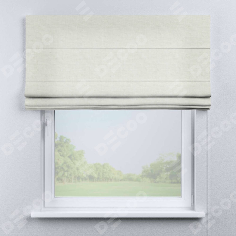 Римская штора производителя «Cortin», используется для проёма, пошита из ткани лён молочный, артикул ткани 23568. Имеет универсальный механизм и подходит для монтажа: на потолок, на стену и в нишу.