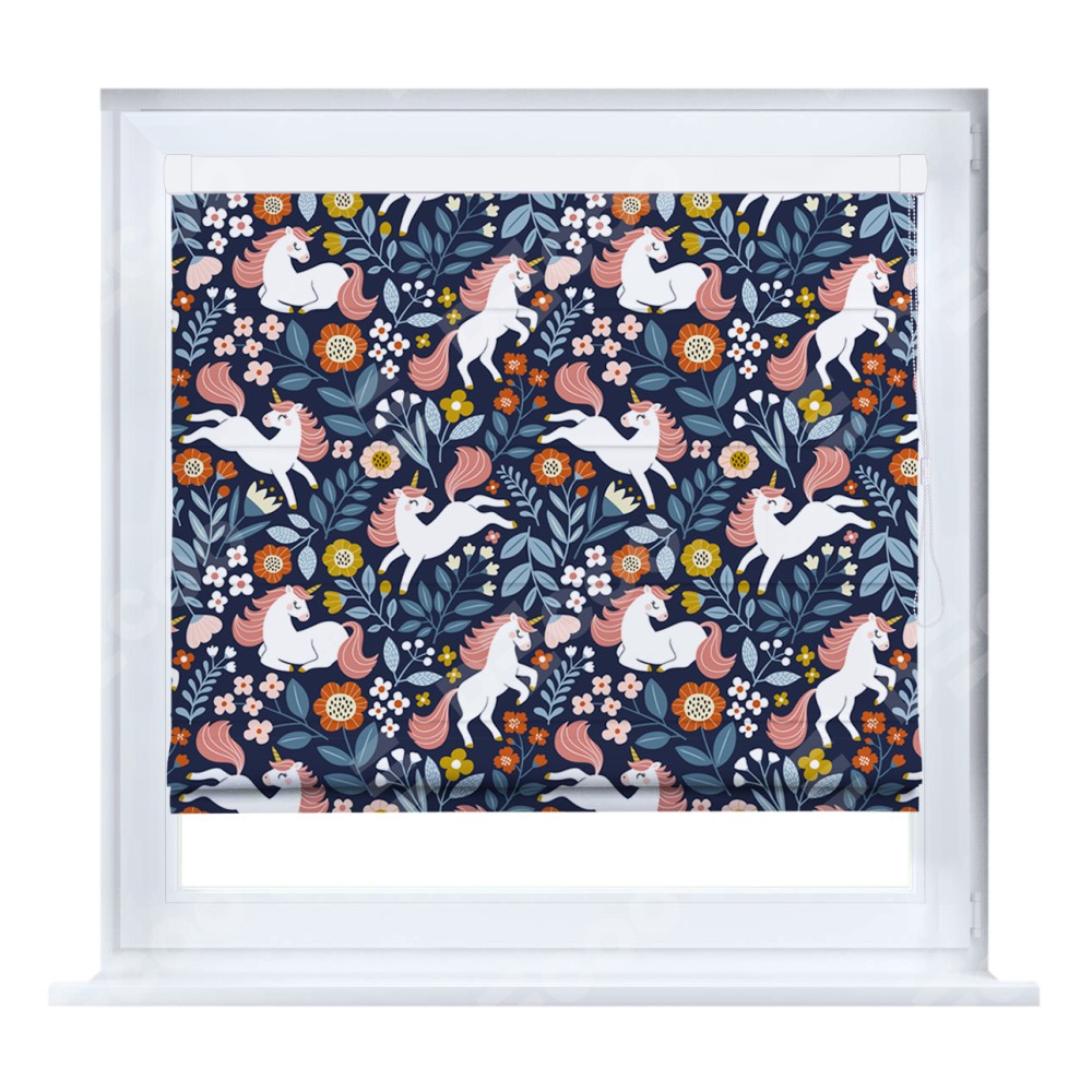 Римская штора «Кортин» на створку «Цветы и единороги»