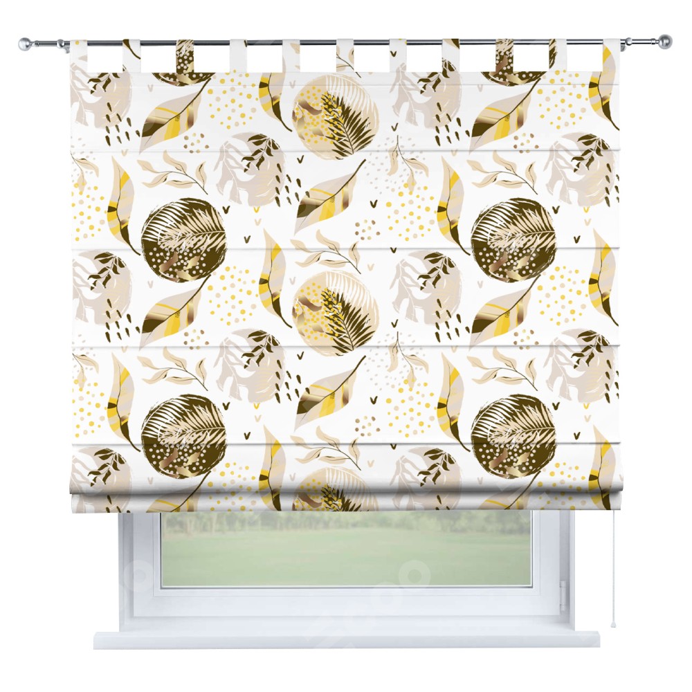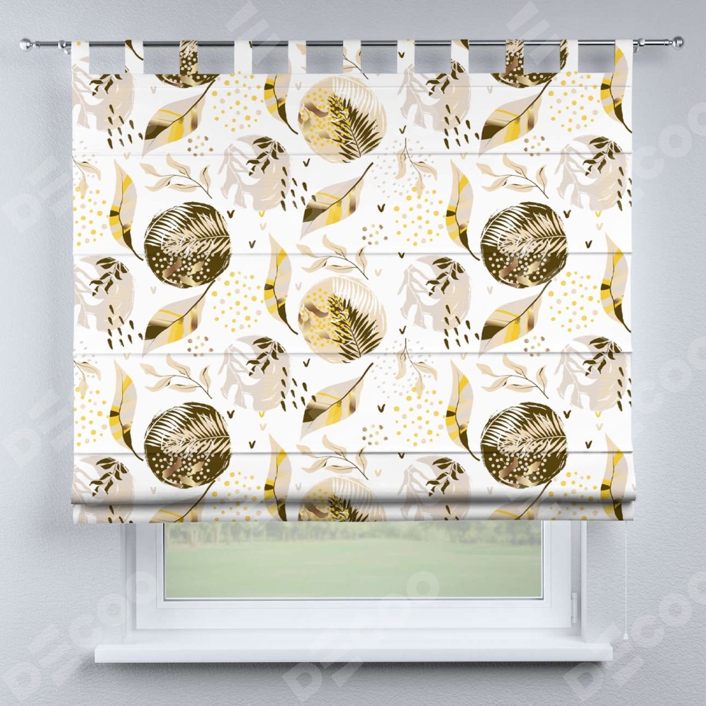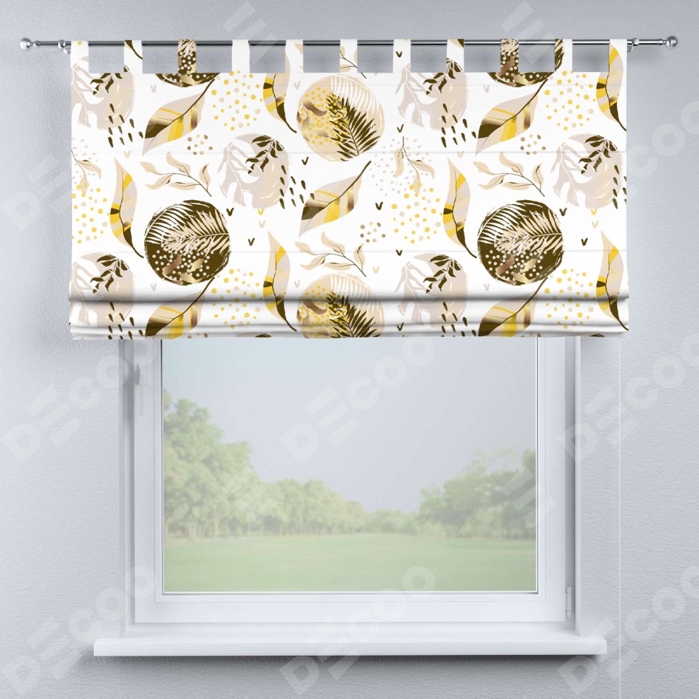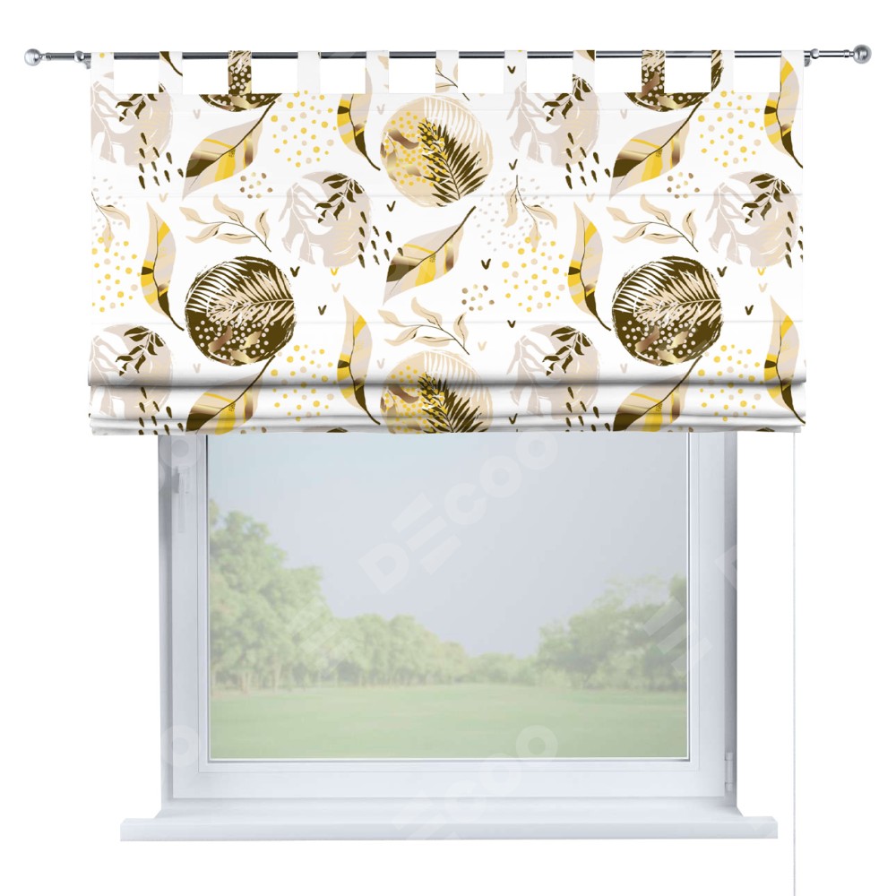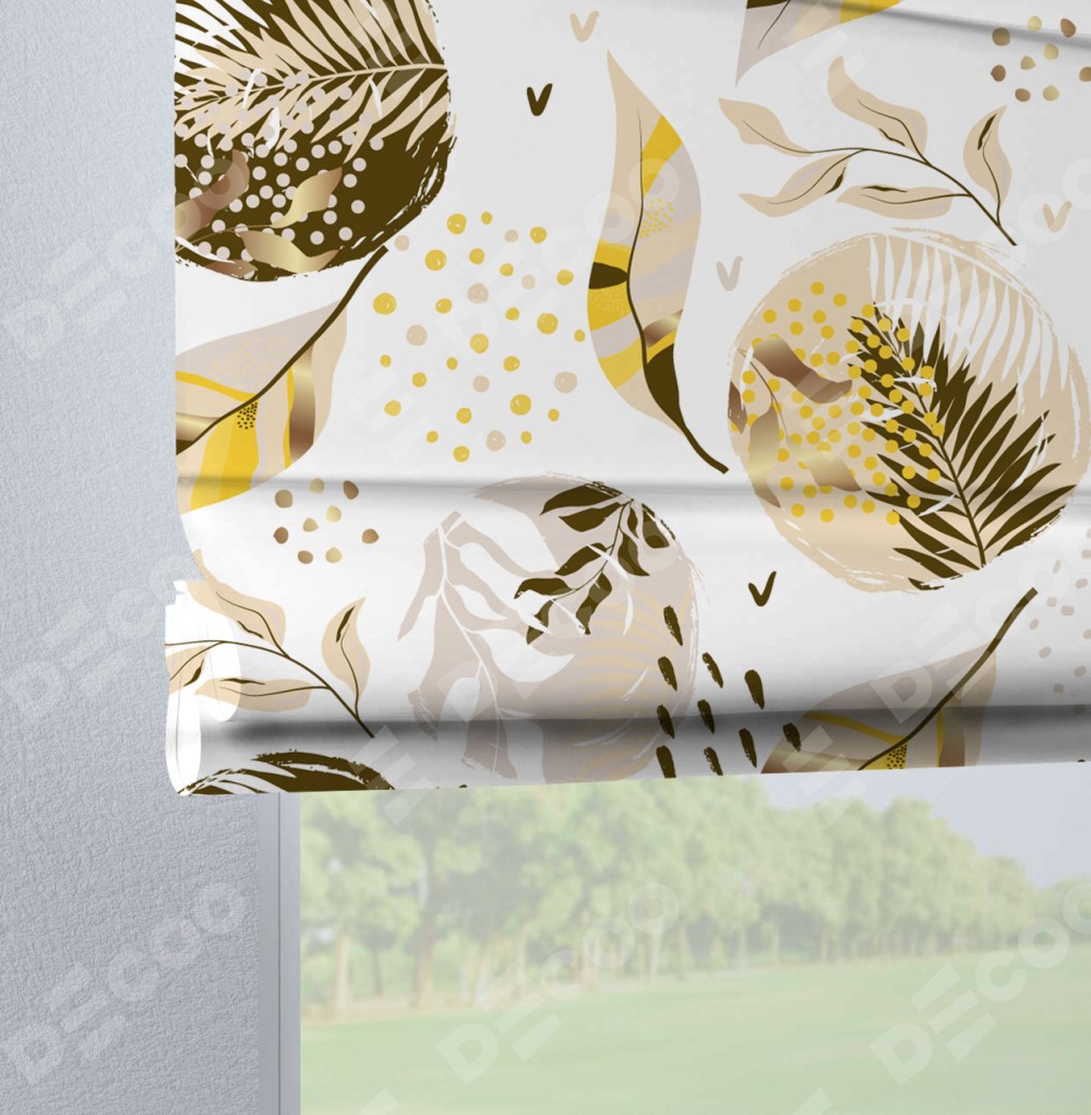 Римская штора производителя «Cortin», используется для проёма, пошита из ткани блэкаут с нанесением сублимационной печати «Золотые листья». Данная модель пошита на петлях, комплектуется на выбор круглым карнизом и подходит для монтажа на стену. Римская штора на петлях имеет простую систему регулировки высоты, отличительным преимуществом данной модели является простой способ монтажа. Достаточно повесить ее на трубу и штора готова!
