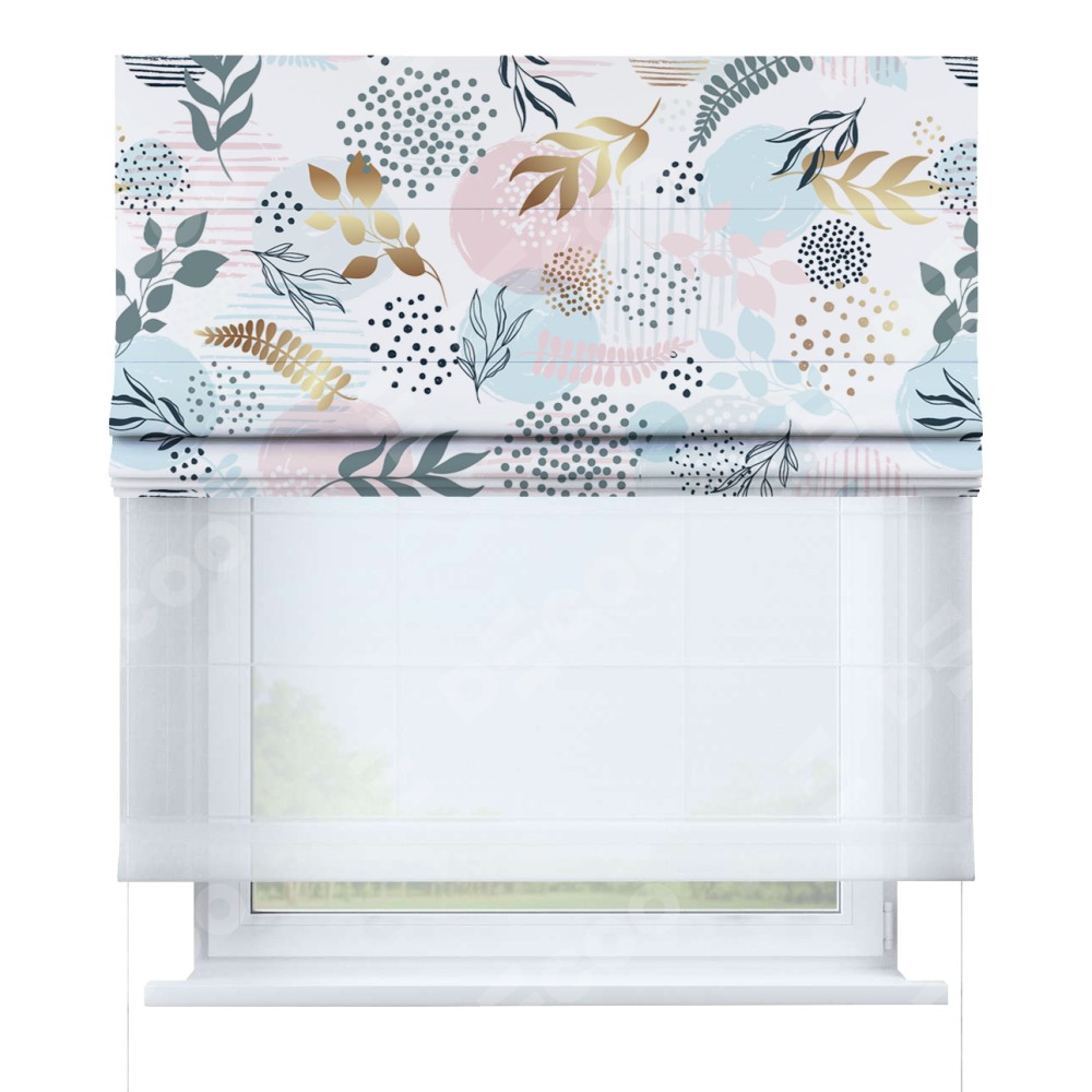 Римская штора «Кортин» день-ночь «Точки и листочки»