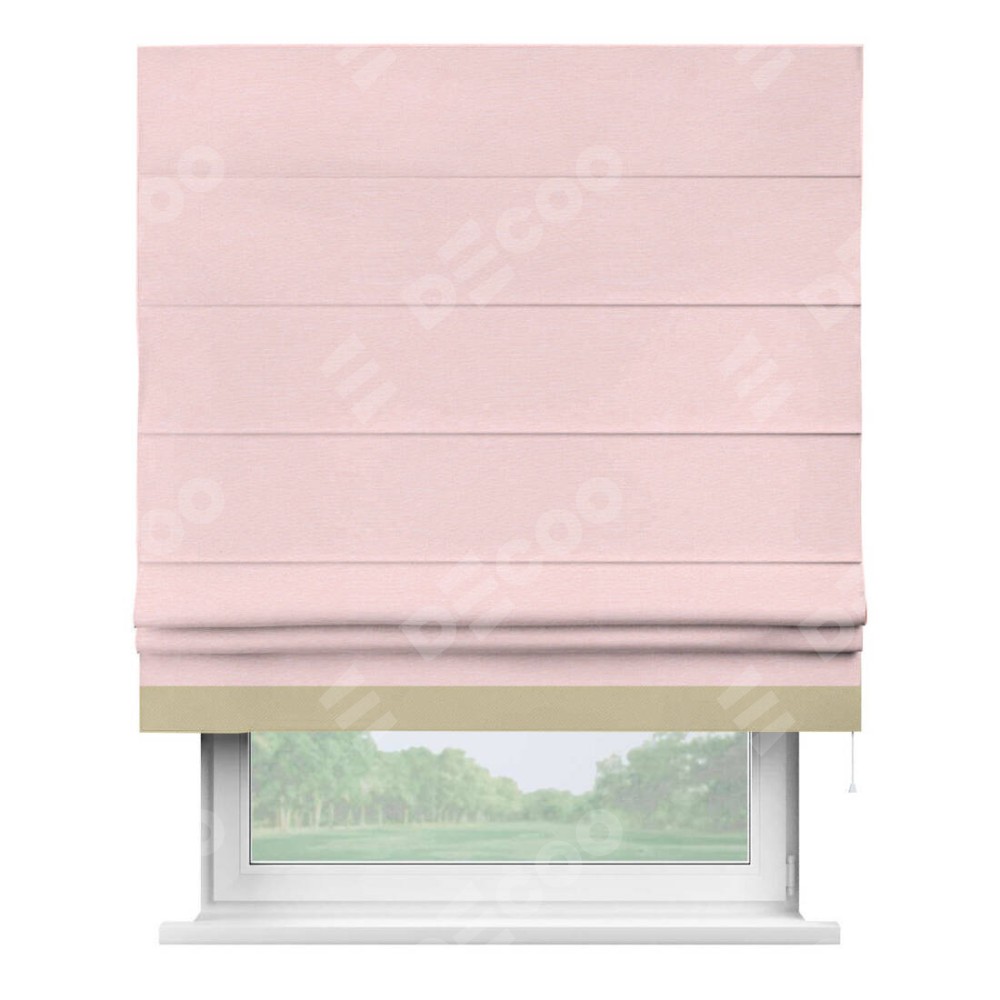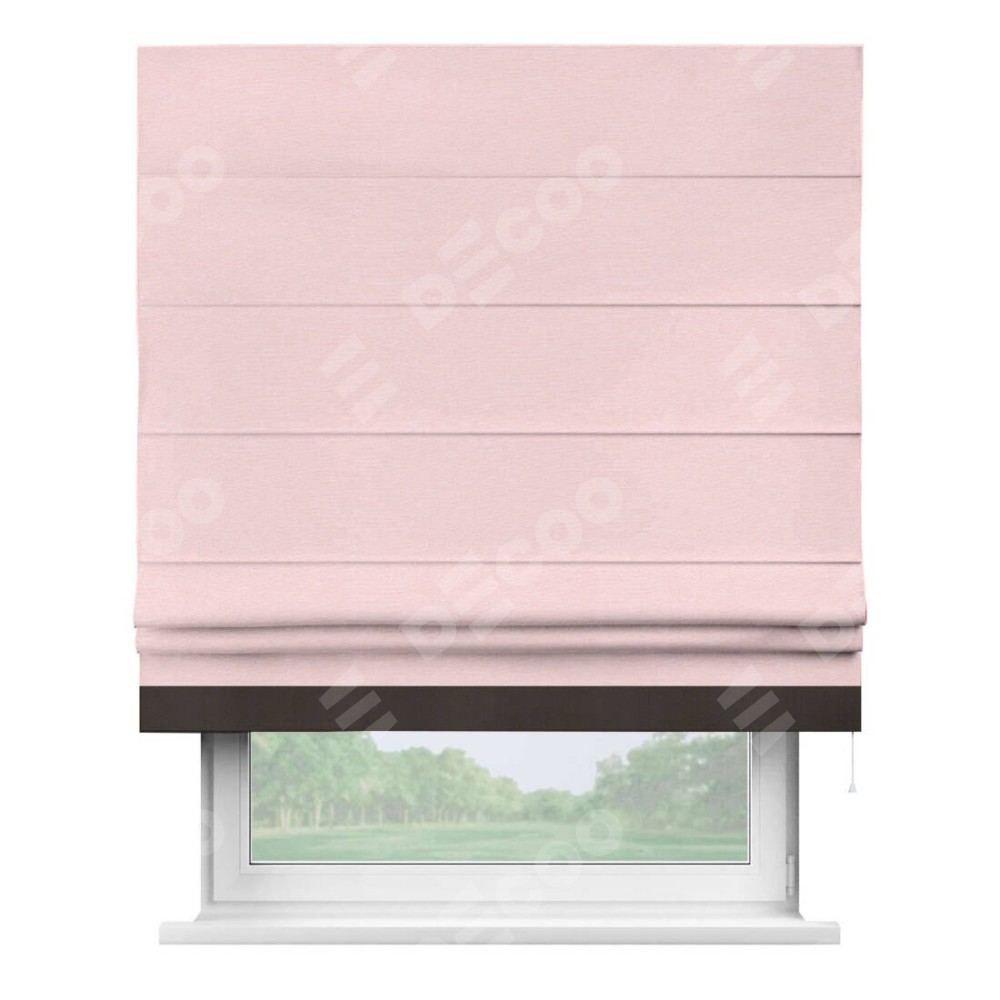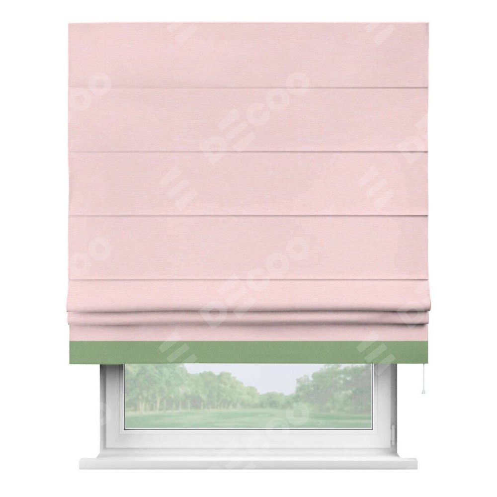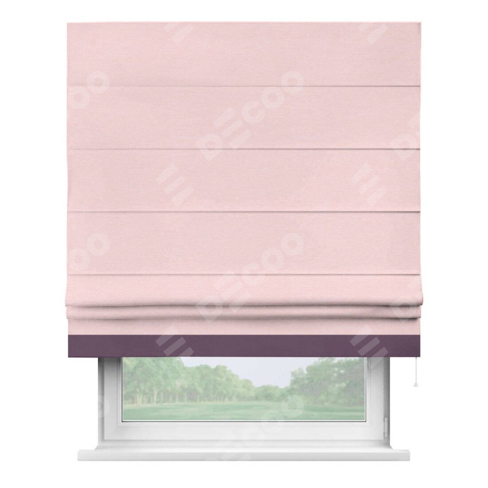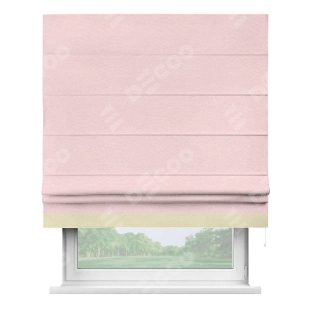 Римская штора производителя «Cortin», используется для проёма, пошита из ткани блэкаут однотонный розовый, артикул ткани 83046. Отделка шторы кантом «Джестер», ткань для канта используется из блэкаута однотонного разной расцветки на выбор. Имеет универсальный механизм и подходит для монтажа: на потолок, на стену и в нишу.